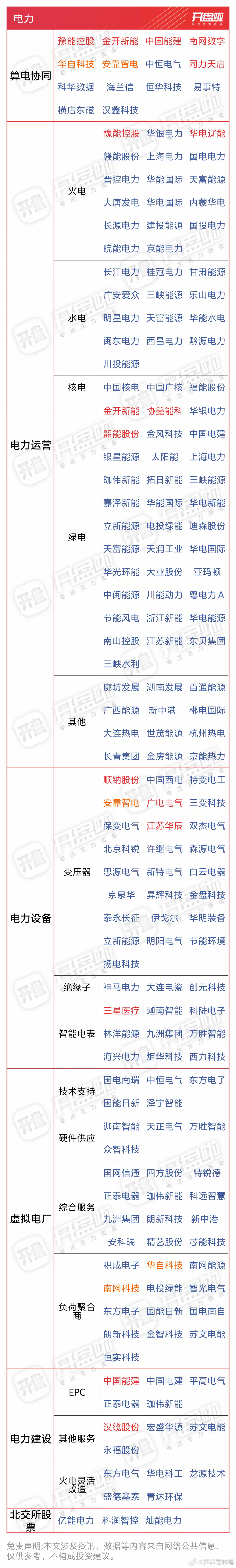 而维持数据中心运转还需要庞大的冷却系统来散发热量,以及备用电源、网络设备等,这些都构成了巨大的电力负荷,加上好多电网使用时间很长。根本负担不了太大负荷的电力输送,因此才会有国家计划投资5万亿改善电网的新闻。而这都是实打实的利好,因此电力电网的预期远没有结束呢,或许更大的惊喜在后头。(数据来源于开盘了,仅供参考。)