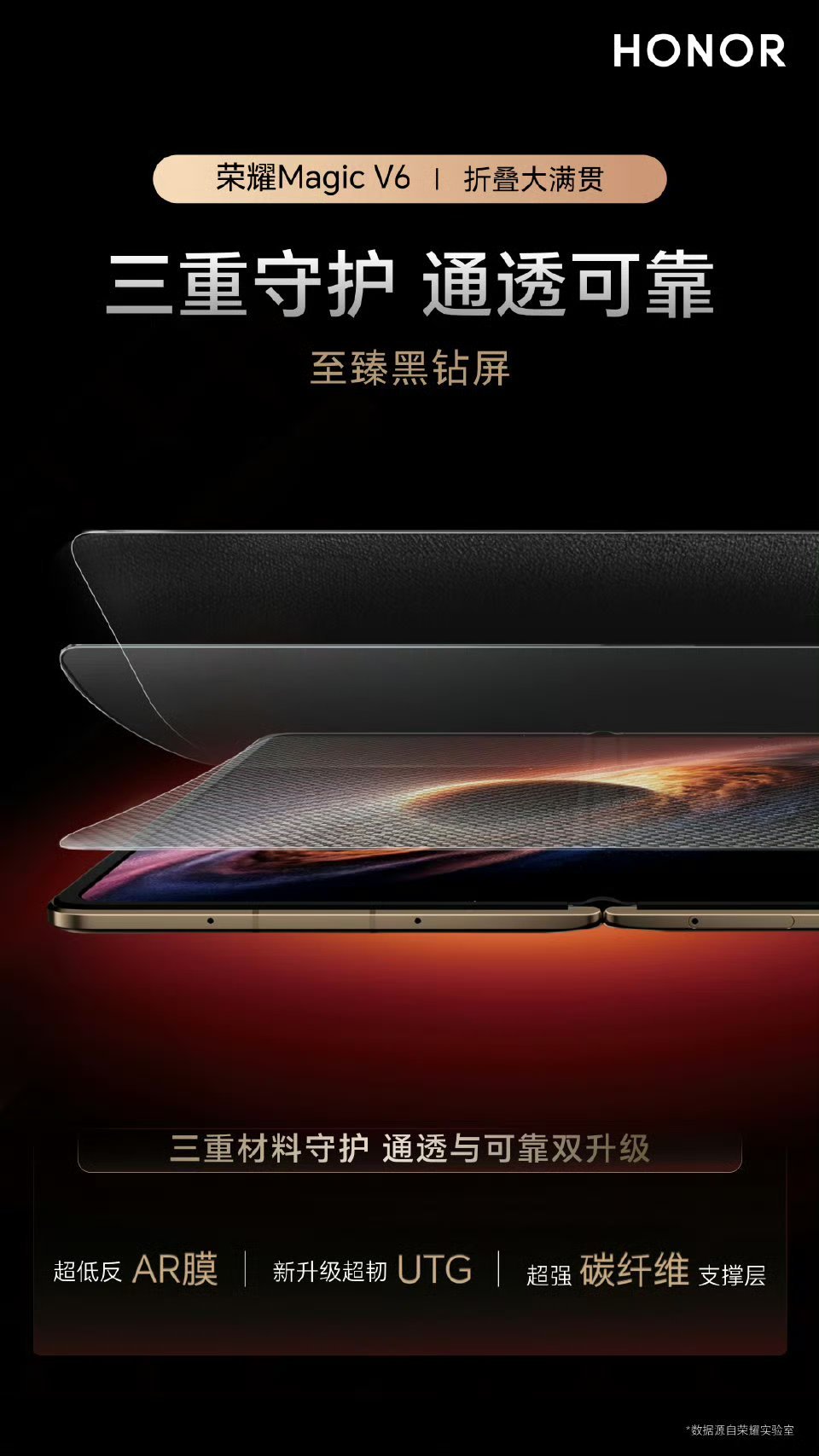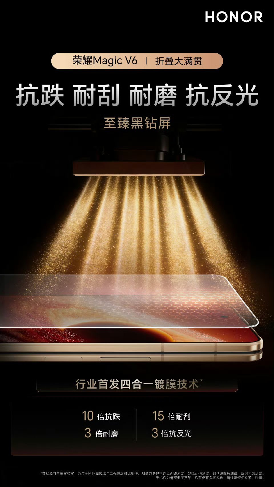 【十倍耐刮耐磨!荣耀Magic V6首发黑钻屏:告别贴膜与反光焦虑】
