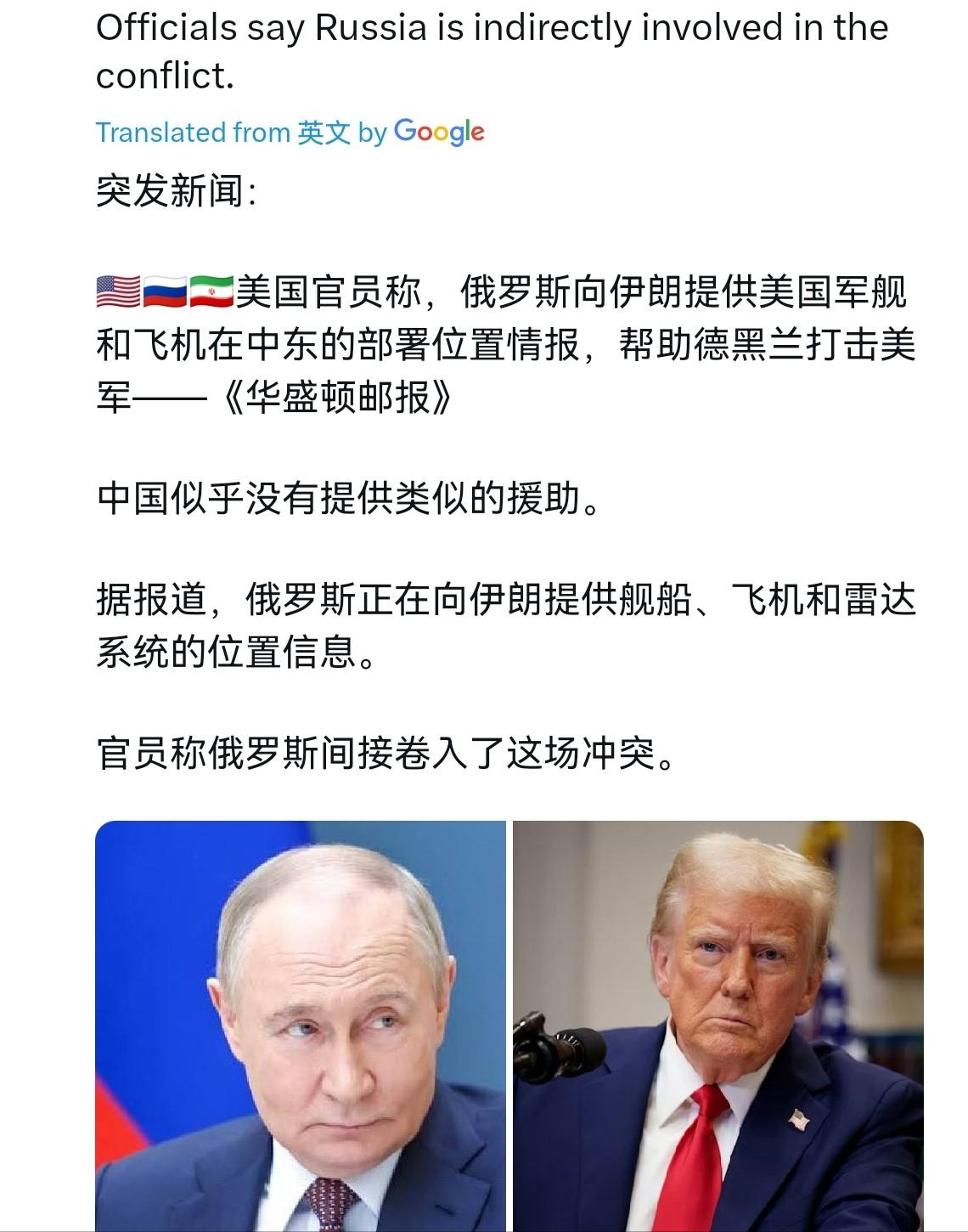 俄罗斯开始报仇雪恨了,现在该轮到美国难受了!3月6日,根据外媒报道,美国官员表示,俄罗斯正在向伊朗提供有关美国军舰和飞机在中东的位置的情报,帮助德黑兰瞄准美军,到目前为止中国似乎没有提供类似的援助。 俄罗斯正在向伊朗提供舰船、飞机和雷达系统的位置,俄罗斯间接卷入了这场冲突。 俄罗斯这波操作说白了就是让横行中东的美国,终于尝尝被人精准盯着的滋味,之前美国总想着在别人家门口耀武扬威,现在轮到自己的军舰战机一举一动都被攥在别人手里。 先看看美军在中东的排场有多夸张,截至2026年2月底,他们在以色列、约旦、沙特等国和周边海域集结了280架战术飞机,其中包括30架F-35A、12架F-35C、11架F-22A这些顶尖隐身战机,还有70架F-15E、84架F/A-18E/F这样的主力机型,再加上50余架特种飞机、无人机和100余架空中加油机,海上更是摆了两个航母打击群、32艘舰艇,还有至少3艘核潜艇,这部署规模号称是2003年伊拉克战争后最大的,摆明了就是想靠武力压服伊朗。 可美军万万没想到,自己花大价钱搞的包围圈,却被俄罗斯的情报支援撕开了口子。 3月6日普京和伊朗总统通完电话还不到24小时,美国官员就急着爆料伊朗拿到了美军坐标,这些情报可不是随便编的,俄罗斯在太空有13颗军用侦察卫星常态在轨,专门盯着中东这类重点区域,之前在叙利亚战场上,俄军就曾调动10颗卫星24小时跟踪目标,48小时内就精准命中IS的指挥所和指挥官住所。 现在这些卫星对准美军,从航母在阿拉伯海的停泊位置,到F-22在以色列基地的起降轨迹,再到“萨德”反导系统的雷达部署点,都能实时传送给伊朗,再加上“格洛纳斯”导航系统的支持,伊朗相当于拿到了一张美军中东部署的实时地图。 这可不是俄伊第一次这么默契配合,早在2016年,俄罗斯就首次使用伊朗的哈马丹空军基地起飞轰炸机打击叙利亚境内的极端组织,把轰炸距离缩短了一半,载弹量直接拉满到22吨。 俄乌冲突期间,伊朗给俄罗斯提供了大量无人机技术和产能,帮俄罗斯缓解了战场压力,现在俄罗斯用情报支援回馈,正好形成了互补的闭环。 而且俄罗斯的情报能力早有实战验证,2015年空袭叙利亚时,他们就靠特种部队地面侦察、卫星监控、无人机巡航的多重手段,一周内摧毁了IS80余处据点,现在这套成熟的体系用到美军身上,精准度自然不用怀疑。 美军之前总以为自己在中东拥有“单向透明”的优势,想打就打想撤就撤,可现在这套行不通了。 伊朗之前因为军用卫星少,自主定位美军目标的能力越来越弱,可拿到俄罗斯的情报后,近期对科威特美军设施、沙特CIA站点、美军预警雷达的打击都精准命中,直接造成了美军的人员伤亡和装备损失。 要知道美军的“阿利·伯克”级驱逐舰、F-22战机再先进,一旦位置暴露,在伊朗的导弹和无人机面前也得小心翼翼,之前那种大摇大摆开进波斯湾的日子彻底结束了。 美国现在是真的骑虎难下,继续扩大军事行动吧,伊朗的反击精度越来越高,美军的伤亡和损失只会越来越大,那些集结的战机舰艇反而成了活靶子;要是收缩兵力,又等于承认自己的威慑失效,在中东的影响力会一落千丈。 更让美国头疼的是,俄伊的合作还在升级,从之前的政治背书变成了实战协同,俄罗斯不仅帮伊朗提供情报,还在和海湾阿拉伯国家保持沟通,想把局势拉到多边外交轨道,这无疑是在削弱美国在中东的单边操控权。 反观中国,始终坚持不干涉他国内政的原则,没有提供类似援助完全符合一贯的外交立场,这也和俄罗斯的战略选择形成了鲜明对比。 美国之前总喜欢在全球煽风点火,让别的国家陷入冲突,现在自己在中东被俄罗斯和伊朗联手牵制,也算是体会到了被人盯着的滋味。 美军那些看似强大的军事部署,在精准情报面前反而成了沉重的包袱,毕竟再先进的武器,一旦暴露位置,就很难逃脱针对性打击,俄罗斯这波精准投喂情报,算是给美国在中东的霸权行为上了一堂生动的教训课,让他们明白横行霸道的日子终究会遇到对手。