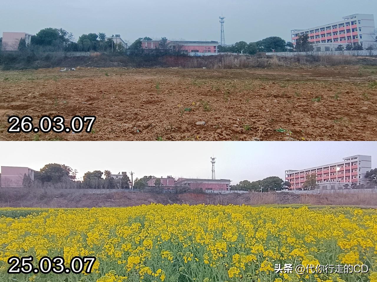 如今这里荒草丛生, 没有了油菜花。