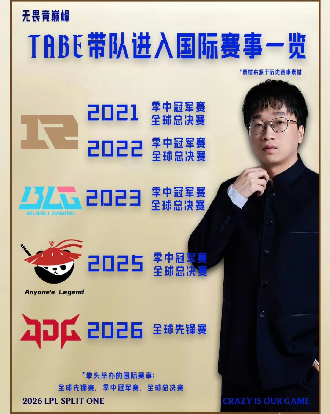 JDG战胜WBG晋级决赛,同时Tabe也成为LPL历史首位率领四支不同战队晋级决赛的教练。先后率领了RNG、BLG、AL和JDG四支战队进决赛。Tabe前东家,每一年都试图证明Tabe是错的,结果Tabe每一年都在证明自己是对的,传奇教练实至名归jdg战胜wbg2026lpl第一赛段英雄联盟