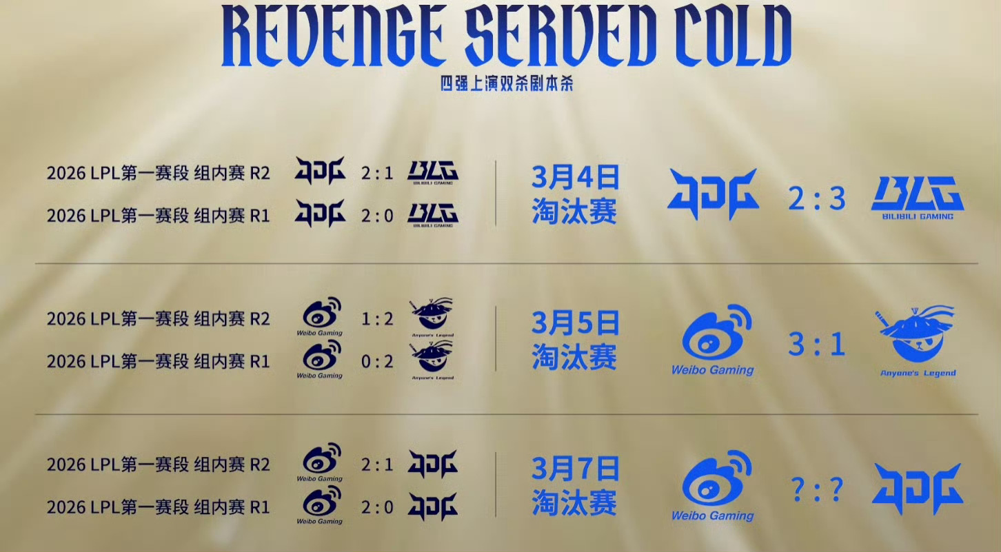 JDG和WBG常规赛都是双杀对手,到了四强双双被反杀。。这波是三十六计里的欲擒故纵是吧jdg战胜wbg2026lpl第一赛段英雄联盟