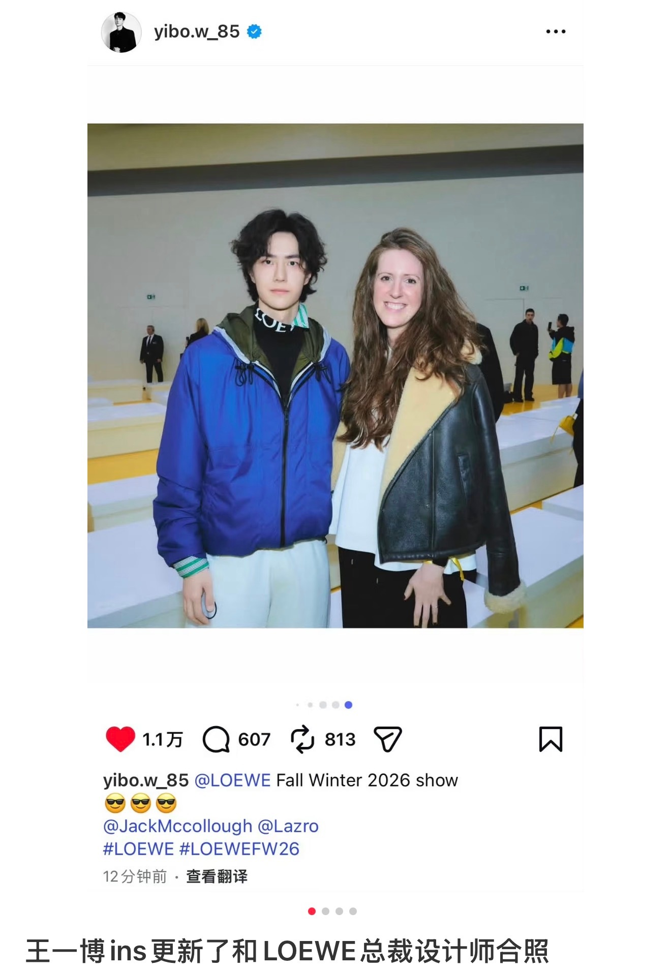 王一博罗意威秀后发文王一博更新ins合照!social小博
