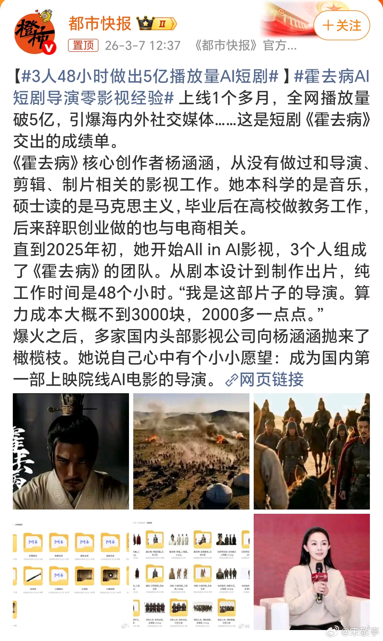 3人48小时做出5亿播放量AI短剧现在AI短剧会是风口吗?不到3000算力成本,