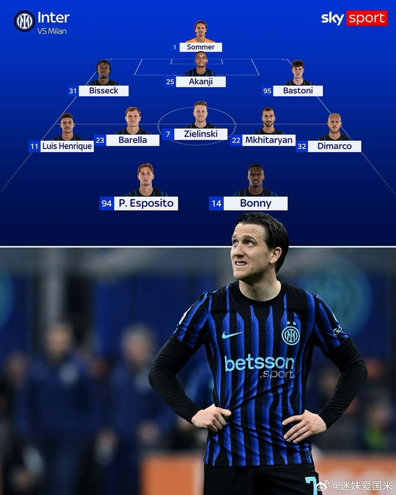 【首发有变】天空体育:恰尔汗奥卢和图拉姆替补,泽林斯基和博尼替代。国际米兰米兰德比ac米兰vs国际米兰