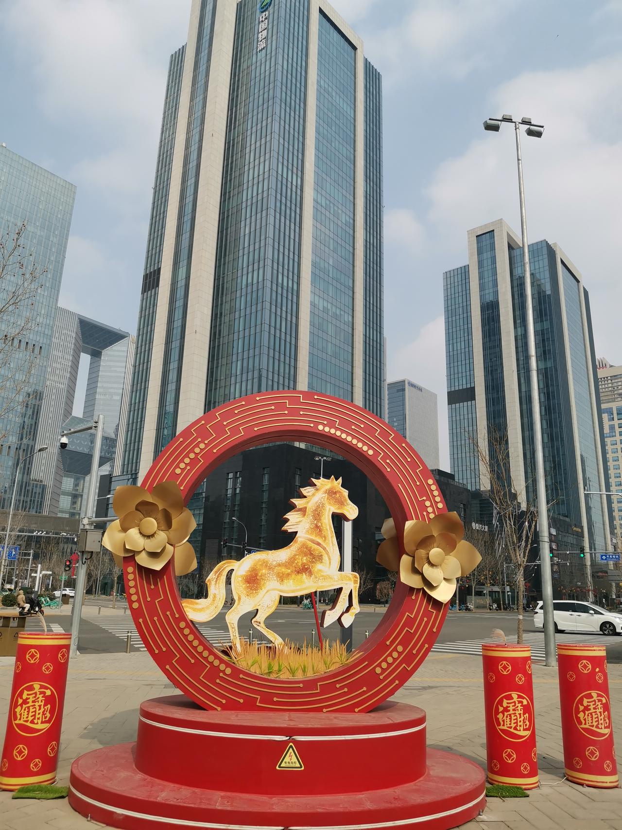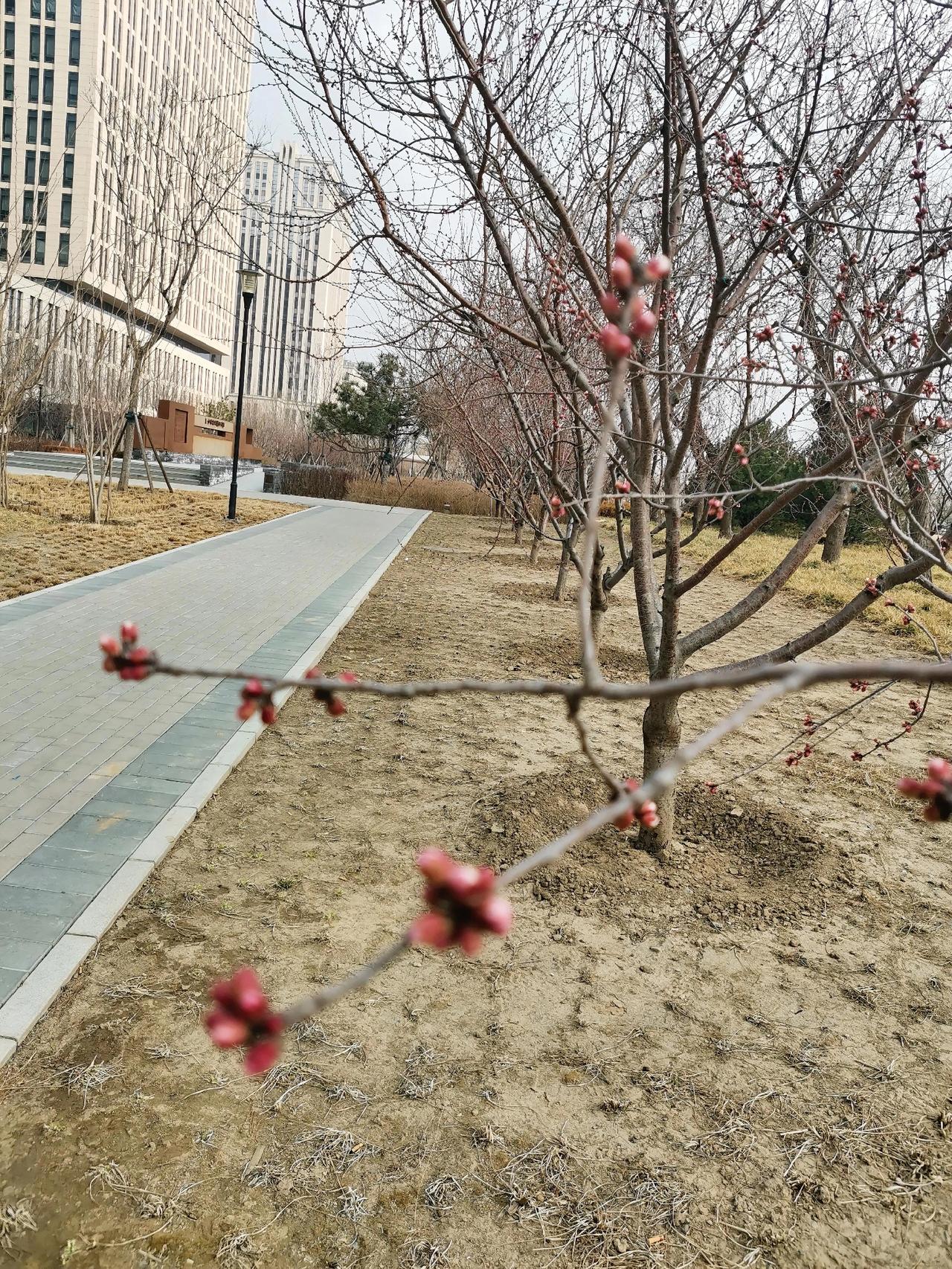 花枝俏,春来到。 丽泽商务区繁华到, 车奔人跑真热闹。 新日子好兆头,路旁早樱东瞅西瞧,凑个好。