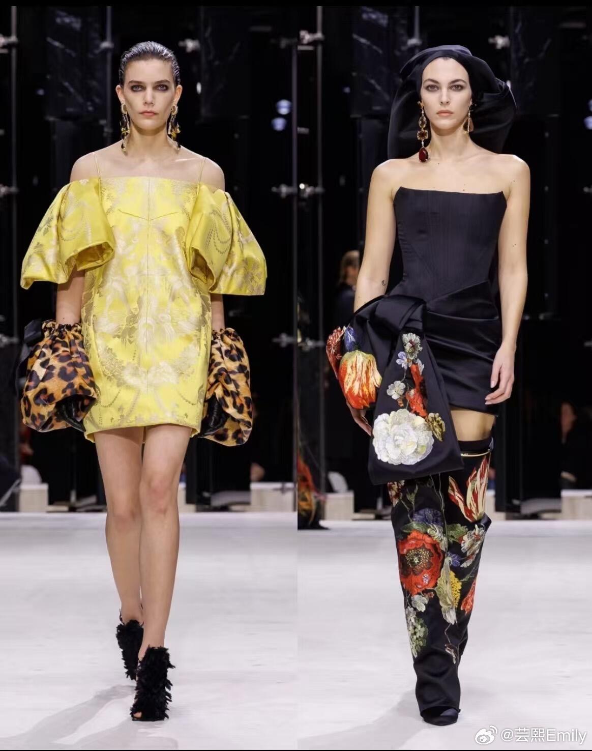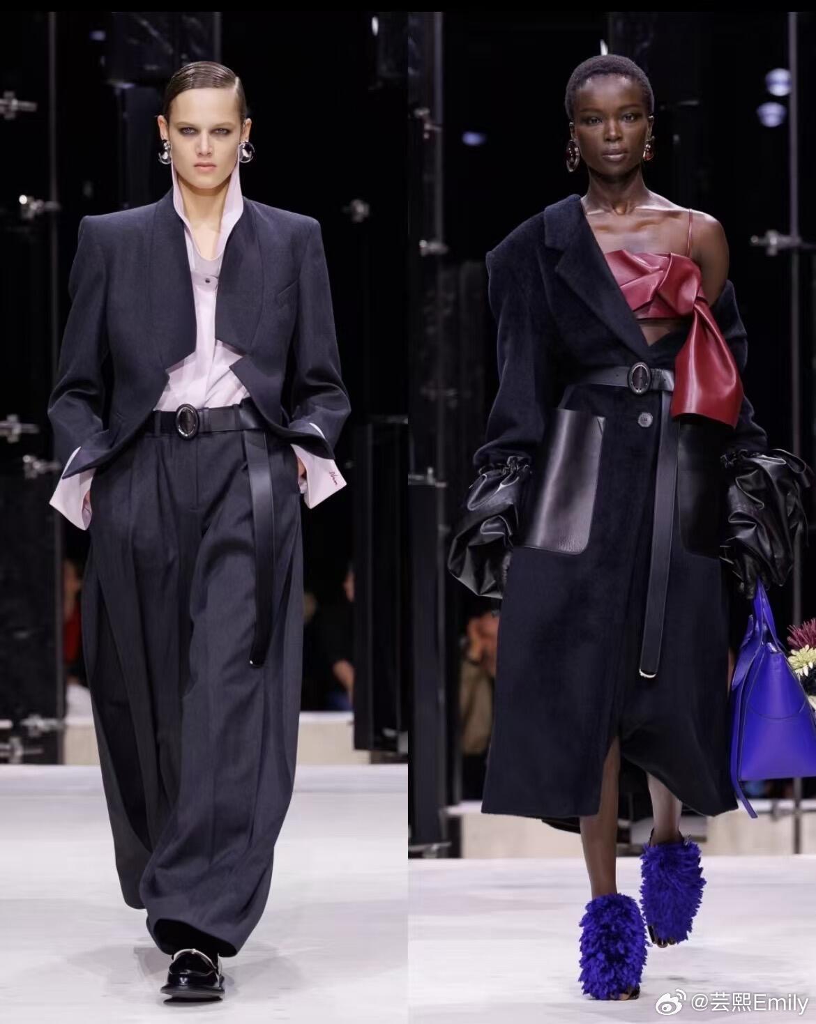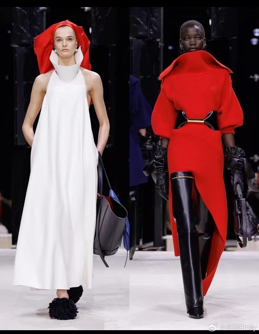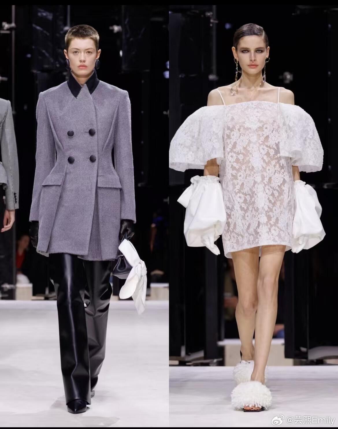 时装周巴黎时装周 巴黎时装周·纪梵希2026秋冬大秀,Sarah Burton以女性视角重写品牌经典,将严谨剪裁、浪漫肌理与先锋表达融为一体,完成一场克制又盛放的时装叙事。秀场以冷调光影铺陈秩序感,开场雕塑感公爵缎斗篷垂坠利落,硬挺廓形勾勒力量轮廓;沙漏套装被赋予宽松体感,细条纹与豹纹大胆碰撞,男性精裁与女性曲线完美共生。做旧撕裂感花卉晚礼服藏着叛逆诗意,激光切割花片、手工塑形花瓣沿肩线与裙摆立体绽放,非印花而是可触摸的植物雕塑。配饰由Stephen Jones操刀,简约T恤缠绕成原生头饰,于寻常中见非凡;鞋履以锋利尖头与稳实厚底平衡,包袋线条利落、金属细节点睛,延续品牌极简奢华。色彩从雾感尘灰、静谧黑,过渡到炽烈红天鹅绒与柔雾奶油色,冷暖交织层次饱满。本季打破秀场边界,超模与素人作家同台,套装与吊带裙自由混搭,传递多元、本真、无界的女性精神——优雅不刻意,力量不张扬,每一件成衣都是自我表达的载体。从纪梵希经典结构到当代女性日常衣橱,Sarah Burton用工艺与诗意证明:高级时装,是温柔的锋芒,是自在的优雅。大秀直击