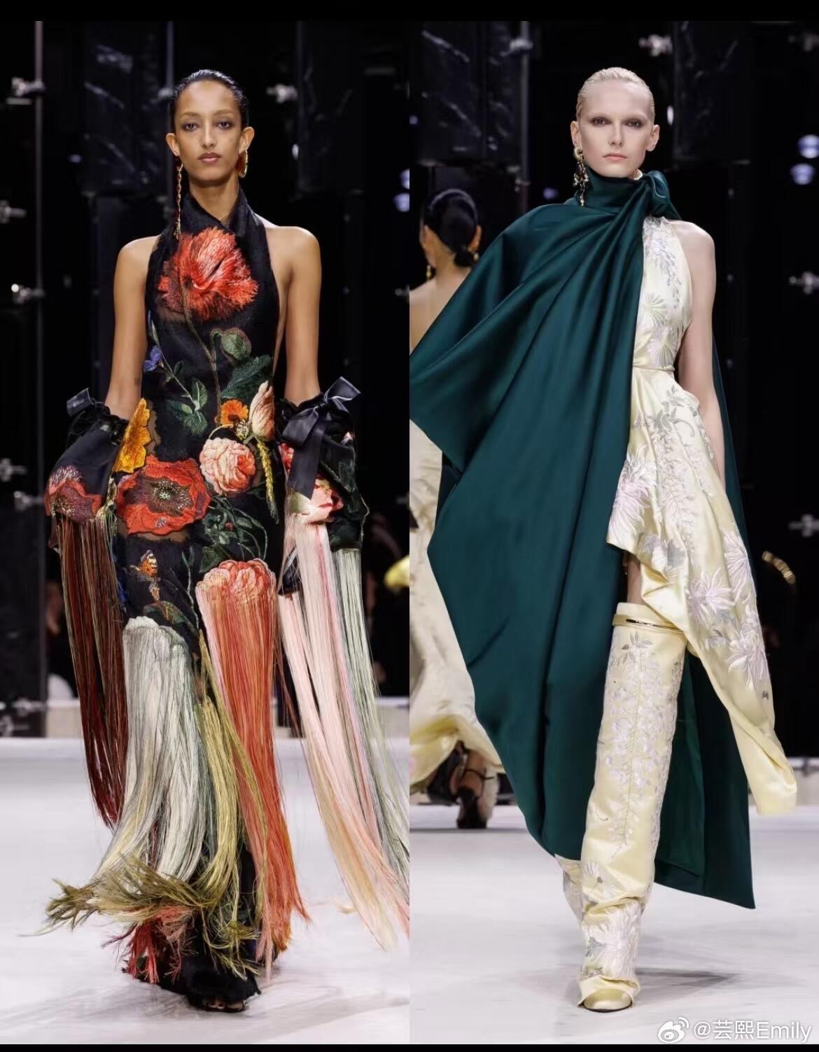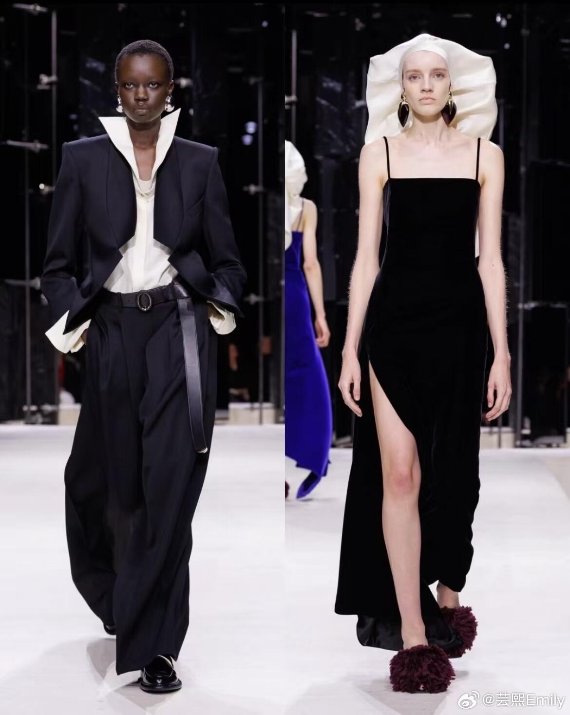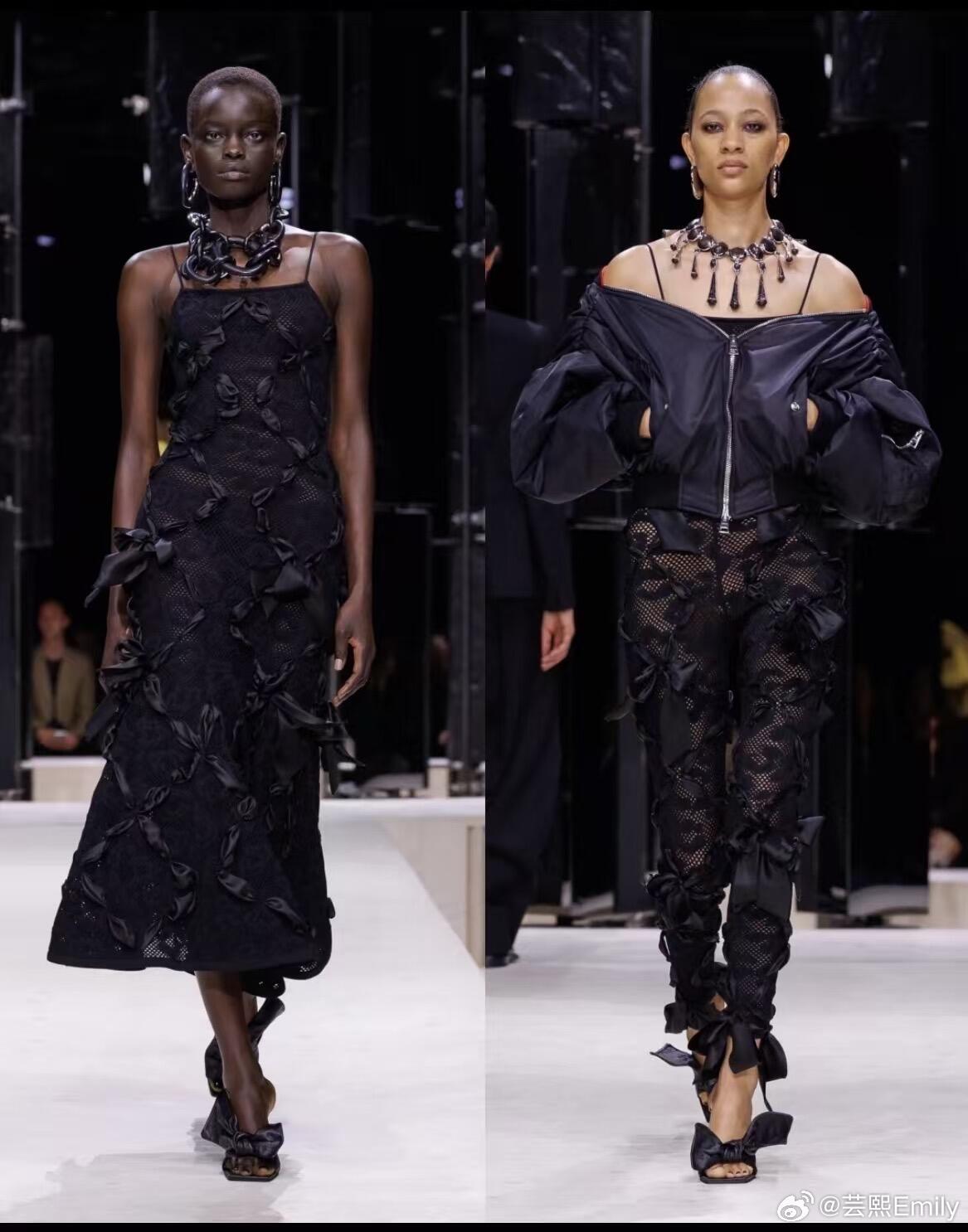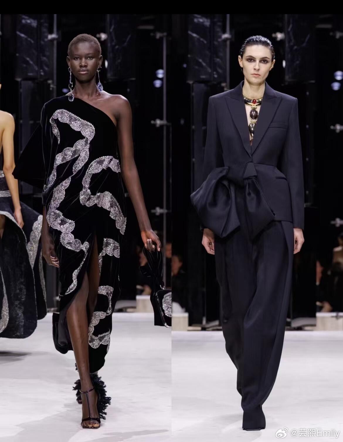 时装周巴黎时装周 巴黎时装周·纪梵希2026秋冬大秀,Sarah Burton以女性视角重写品牌经典,将严谨剪裁、浪漫肌理与先锋表达融为一体,完成一场克制又盛放的时装叙事。秀场以冷调光影铺陈秩序感,开场雕塑感公爵缎斗篷垂坠利落,硬挺廓形勾勒力量轮廓;沙漏套装被赋予宽松体感,细条纹与豹纹大胆碰撞,男性精裁与女性曲线完美共生。做旧撕裂感花卉晚礼服藏着叛逆诗意,激光切割花片、手工塑形花瓣沿肩线与裙摆立体绽放,非印花而是可触摸的植物雕塑。配饰由Stephen Jones操刀,简约T恤缠绕成原生头饰,于寻常中见非凡;鞋履以锋利尖头与稳实厚底平衡,包袋线条利落、金属细节点睛,延续品牌极简奢华。色彩从雾感尘灰、静谧黑,过渡到炽烈红天鹅绒与柔雾奶油色,冷暖交织层次饱满。本季打破秀场边界,超模与素人作家同台,套装与吊带裙自由混搭,传递多元、本真、无界的女性精神——优雅不刻意,力量不张扬,每一件成衣都是自我表达的载体。从纪梵希经典结构到当代女性日常衣橱,Sarah Burton用工艺与诗意证明:高级时装,是温柔的锋芒,是自在的优雅。大秀直击