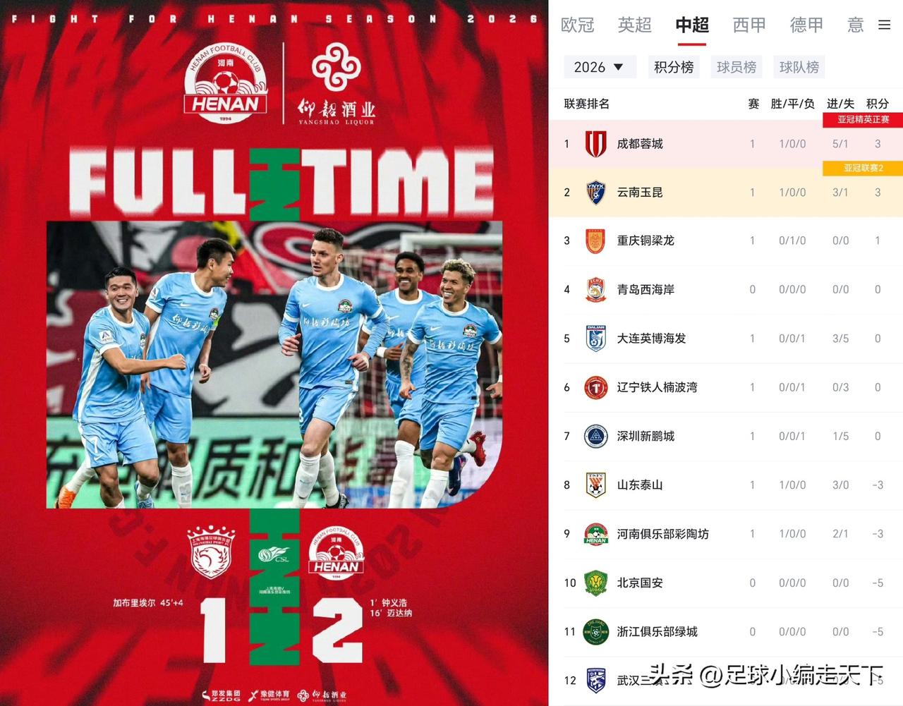 河南队牛逼,赛季第一场就赢了卫冕冠军!和上赛季比真是开天眼了。 作为中立球迷,我想说这场球踢得真好看,节奏、有效时间、进球等等都让我刮目相看,这强度跟英超似的。 这场海港进攻明显还很生涩。不如对面流畅。输的比较可惜,但如果不是门柱估计早就没悬念了。 或许这就是上港胡乱换血的代价,这赛季换了那么多人,结果表现合格的还是回收的刘祝润、附带买来的张源和一年没踢的武磊。还有那个姆布拉真的是拉玛西亚青训出品吗?我看他像县大队出品的。[捂脸]但凡不在冬窗最后换人把体系搞崩,全要重新磨合上半场菜的不成样子,下半场基本就是熟人局,一下子就顺畅很多了。