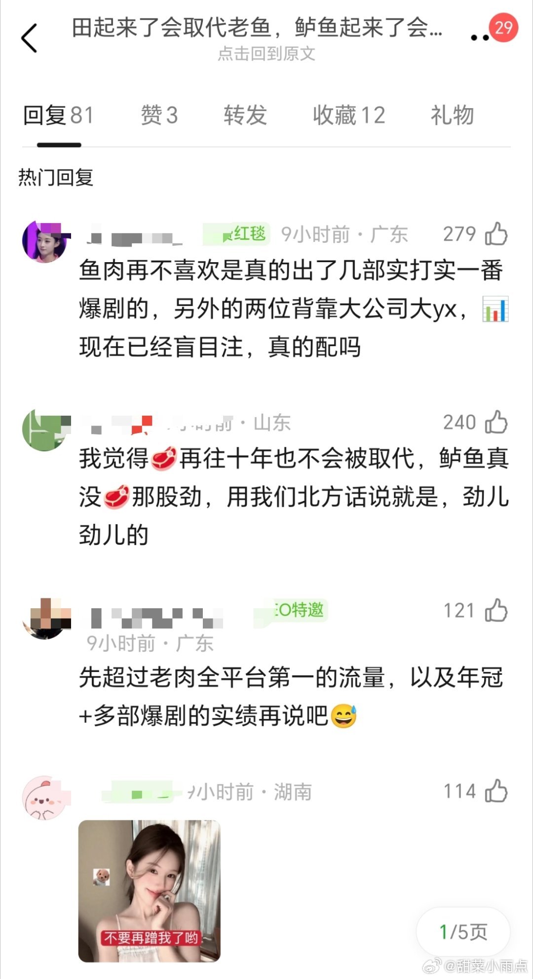 已经有人开始帮吹田曦薇要取代虞书欣,卢昱晓要取代赵露思了95 粉都颠成这样了吗?🐟🥩再怎么样也是手握几部爆剧有实打实国民度在的,另外两个还是有壁吧…