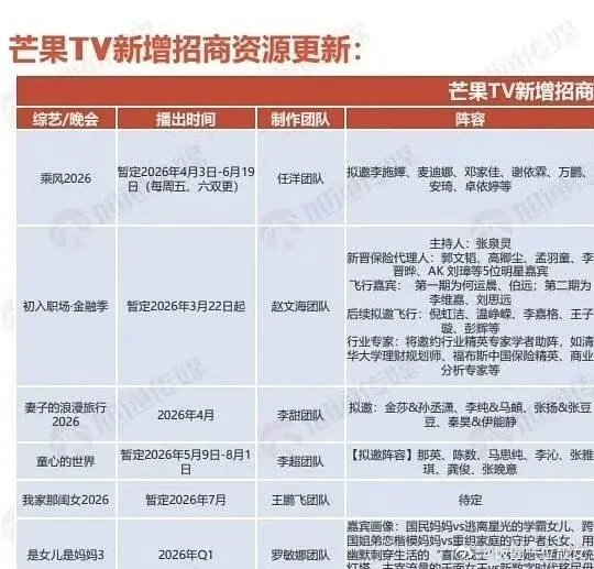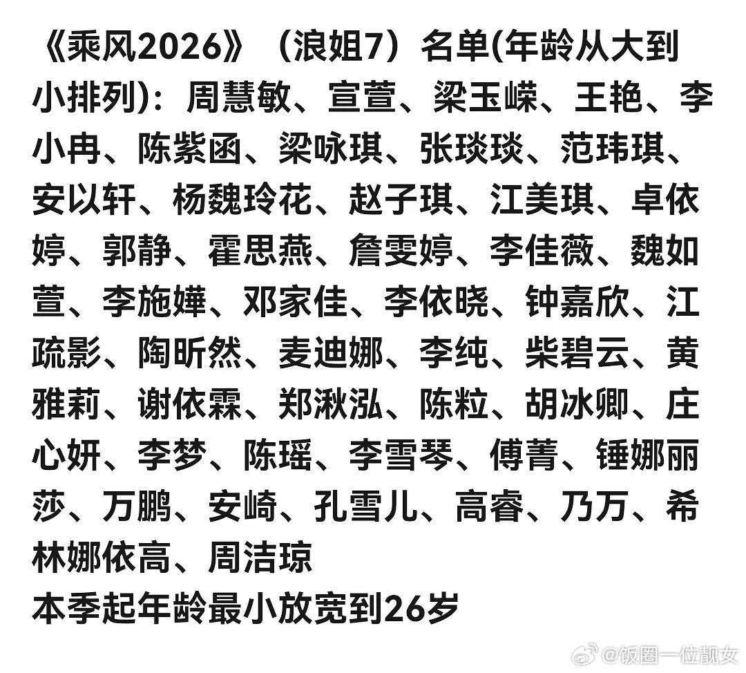 乘风2026拟邀阵容曝光!这波配置太惊喜网传《乘风2026》完整阵容名单流