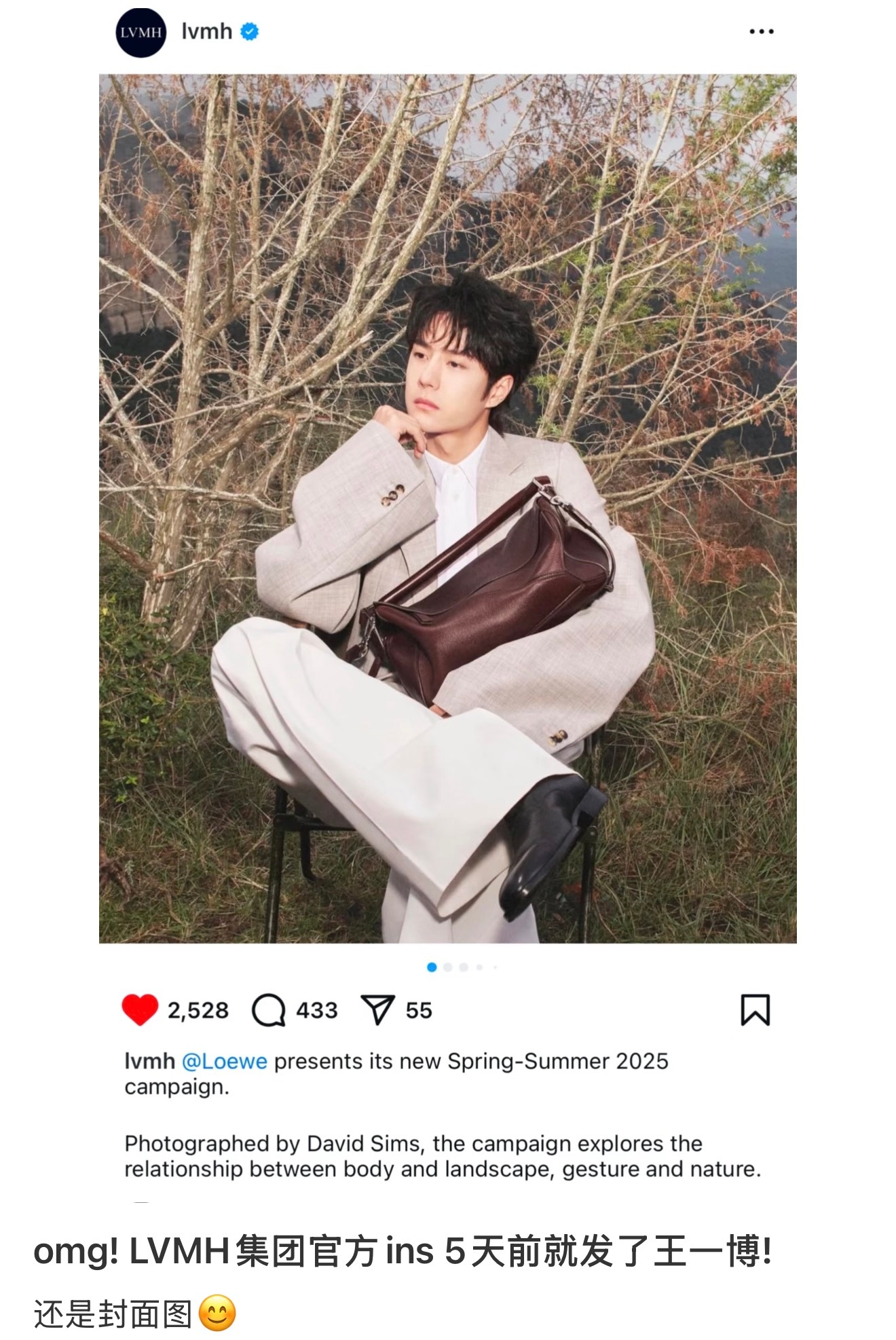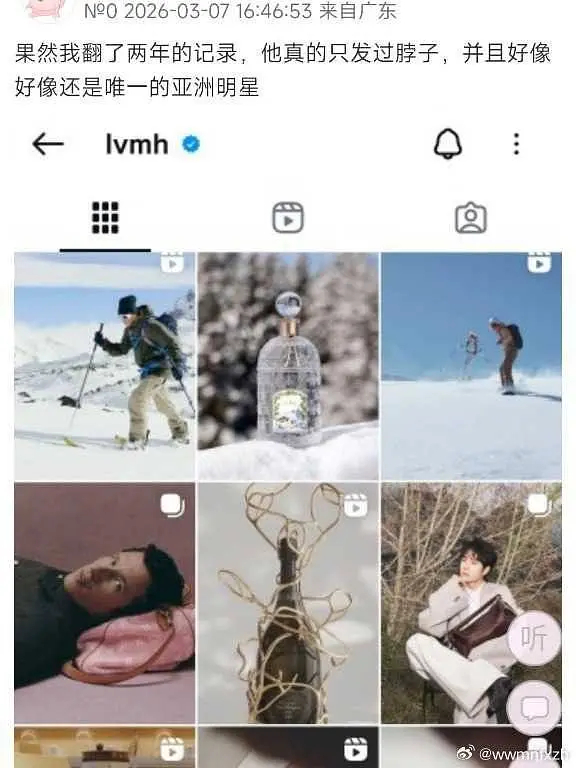 王一博lvmh集团ins唯一发过的亚洲明星是王一博