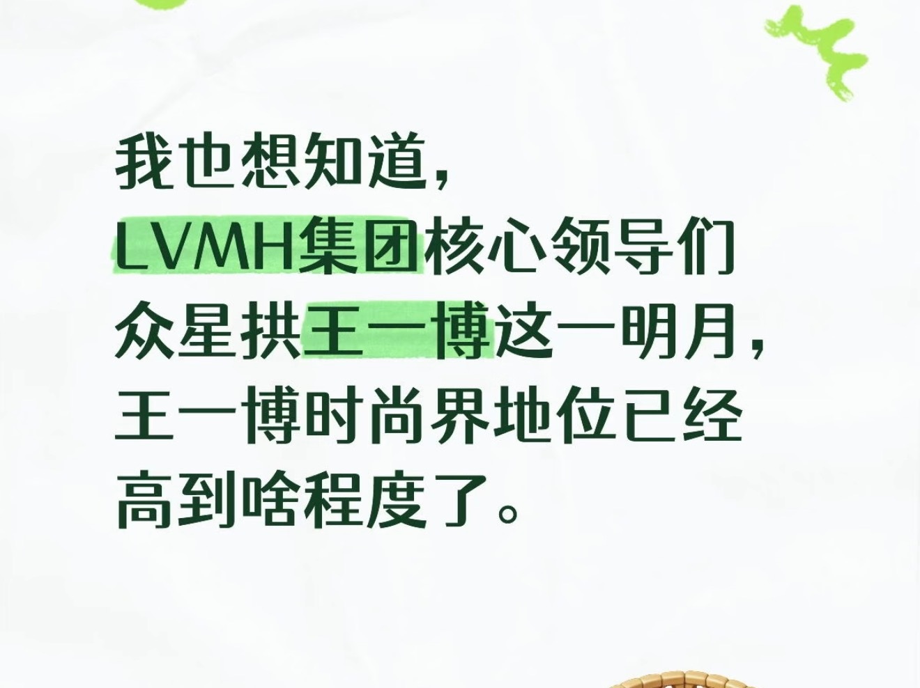 亚奢一王一博lvmh集团ins唯一发过的亚洲明星是王一博,王一博同时还有竞品集团chanel的代言。lvmh只是想加入这个家,怎?