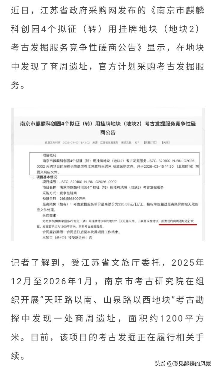 不得不说,南京的历史真的太悠久了,这不南京又一次发现了商周遗址,这次是位于城东麒麟门附近,可见那时候南京已经有不少人居住了,毕竟去年在城西也发现了商周遗址,所以说在历史传承方面,南京从来没有怕过哪个城市。 之前总有人是说南京是六朝古都,是从东吴开始兴盛起来的,但随着这两处遗址的出现,现在可以把南京的历史追溯至商朝了,那时候南京应该也比较繁荣,只是太久远了,没有留下记录而已吧。