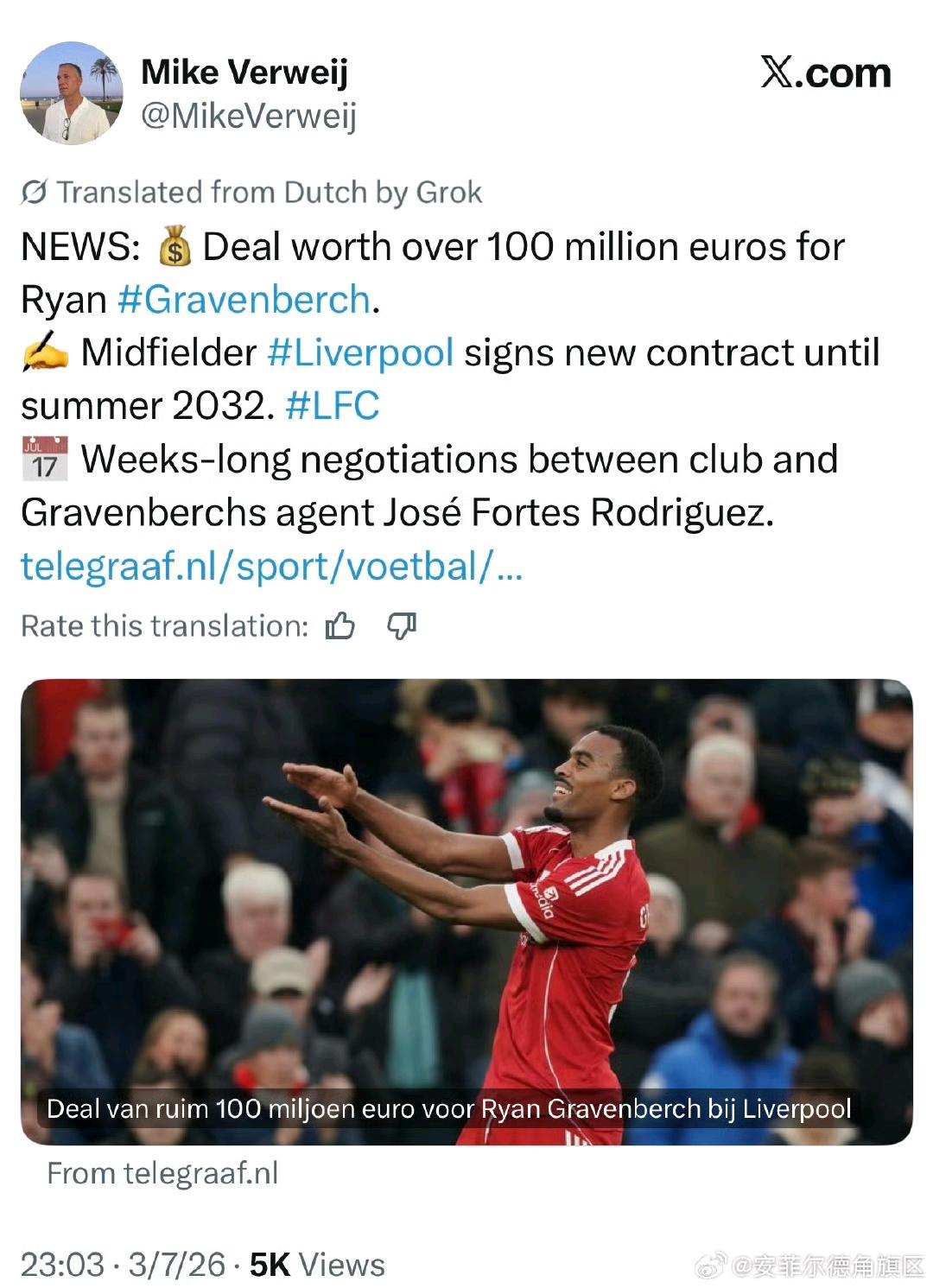 利物浦要续约赫拉芬贝赫,6年接近1亿,周薪大概28万英镑。 这在英超中场里面算很多了,续约完成他也就30+年龄,巅峰期都在利物浦啦。 踢得好他也是英超第一后腰,对吧。[大金牙]