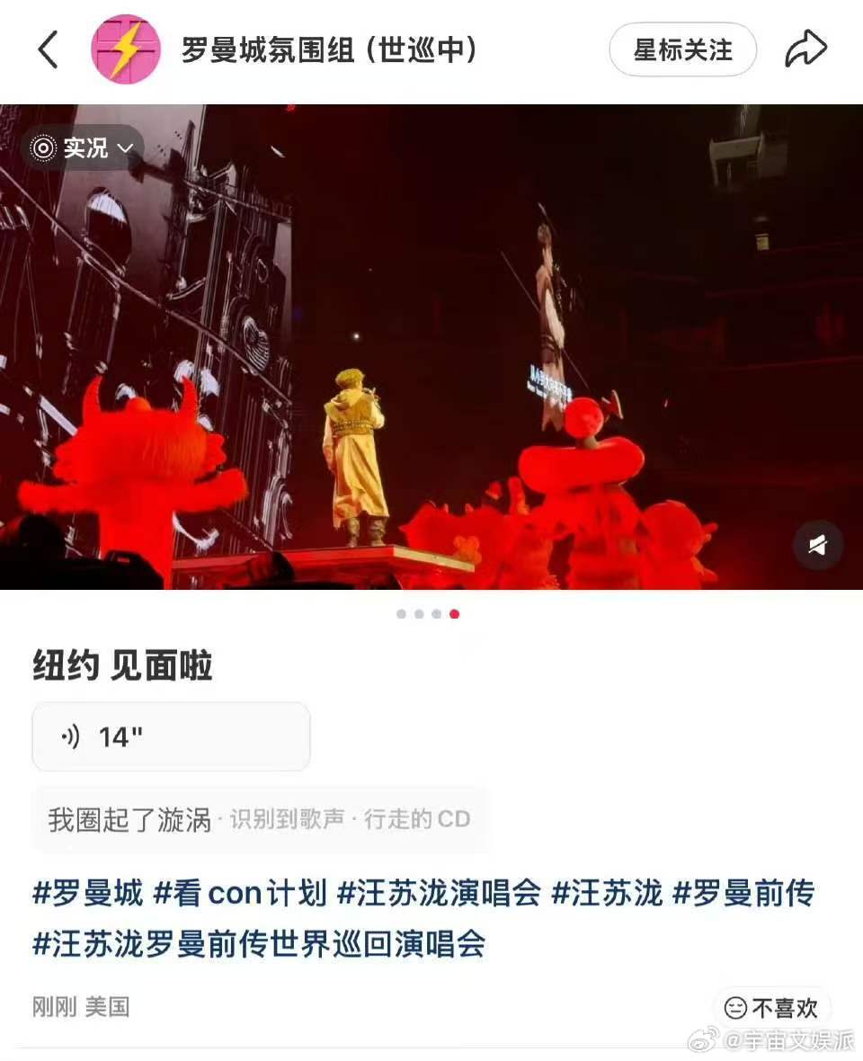 汪苏泷纽约上座率汪苏泷上座率汪苏泷世巡纽约站,巴克莱中心座无虚席,粉色与红色灯海交织成震撼画面。他在舞台中央宣告:“在纽约也请你记住我叫汪苏泷”,用实力与热爱征服海外观众。汪苏泷演唱会