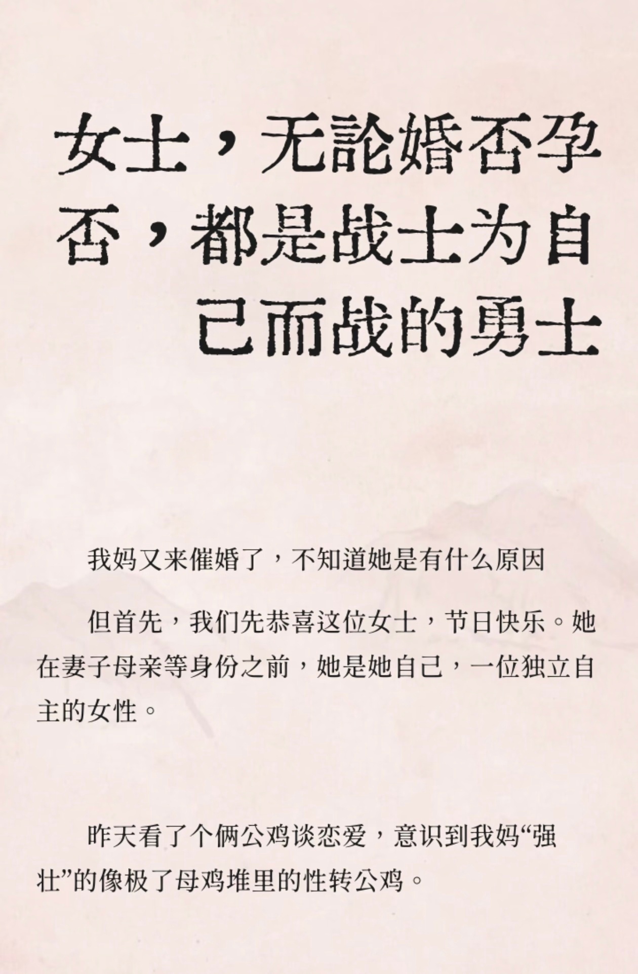 女士,无论婚否孕否,都是战士!为自已而战的勇士。