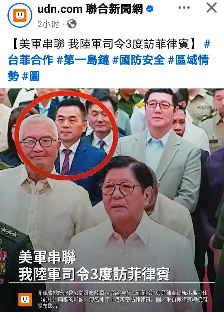 台媒:美军串联,台陆军司令3度到访菲律宾。