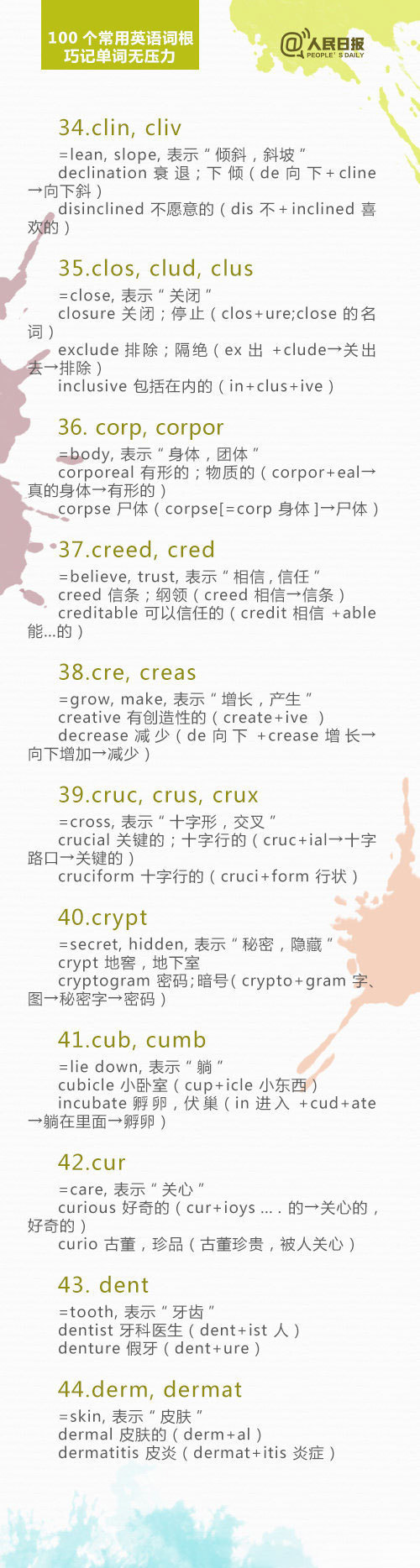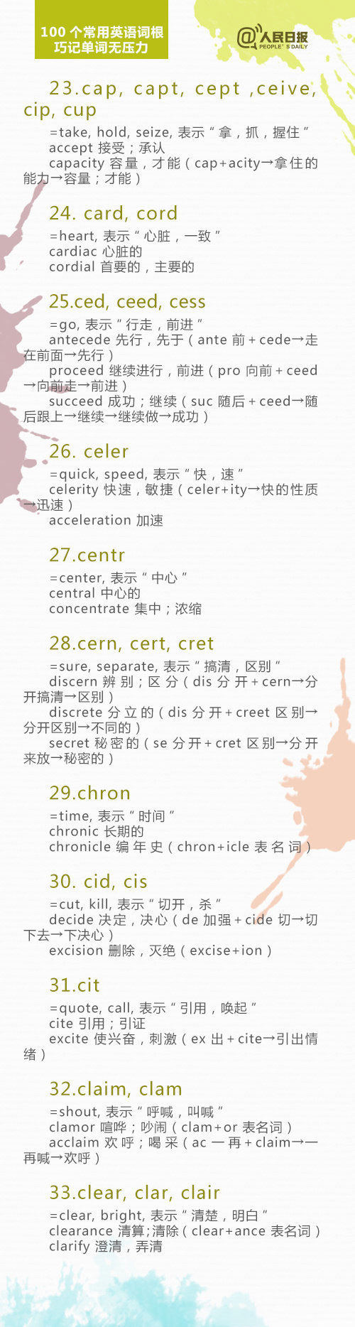 100个英语单词词根,助你背单词事半功倍!