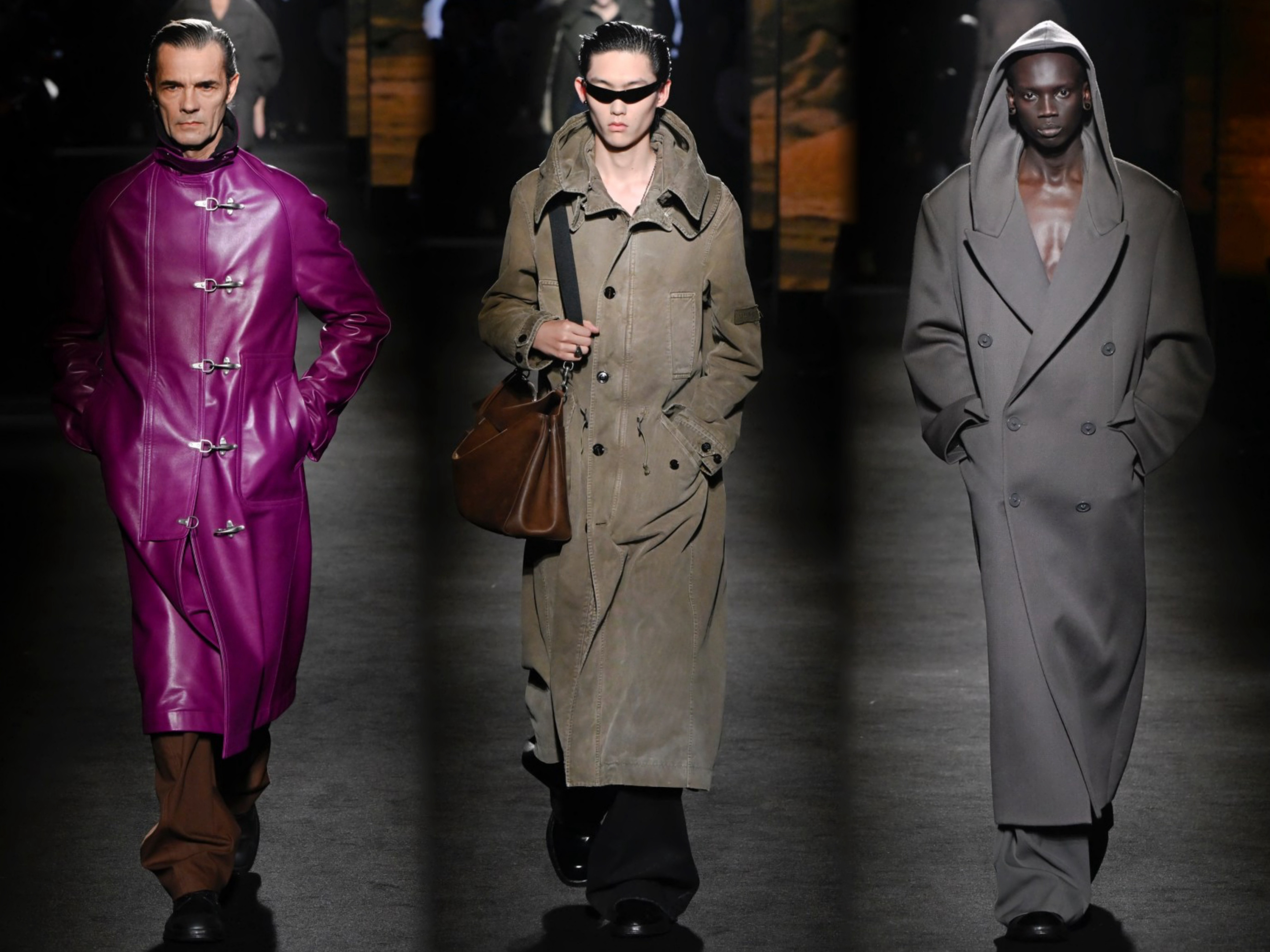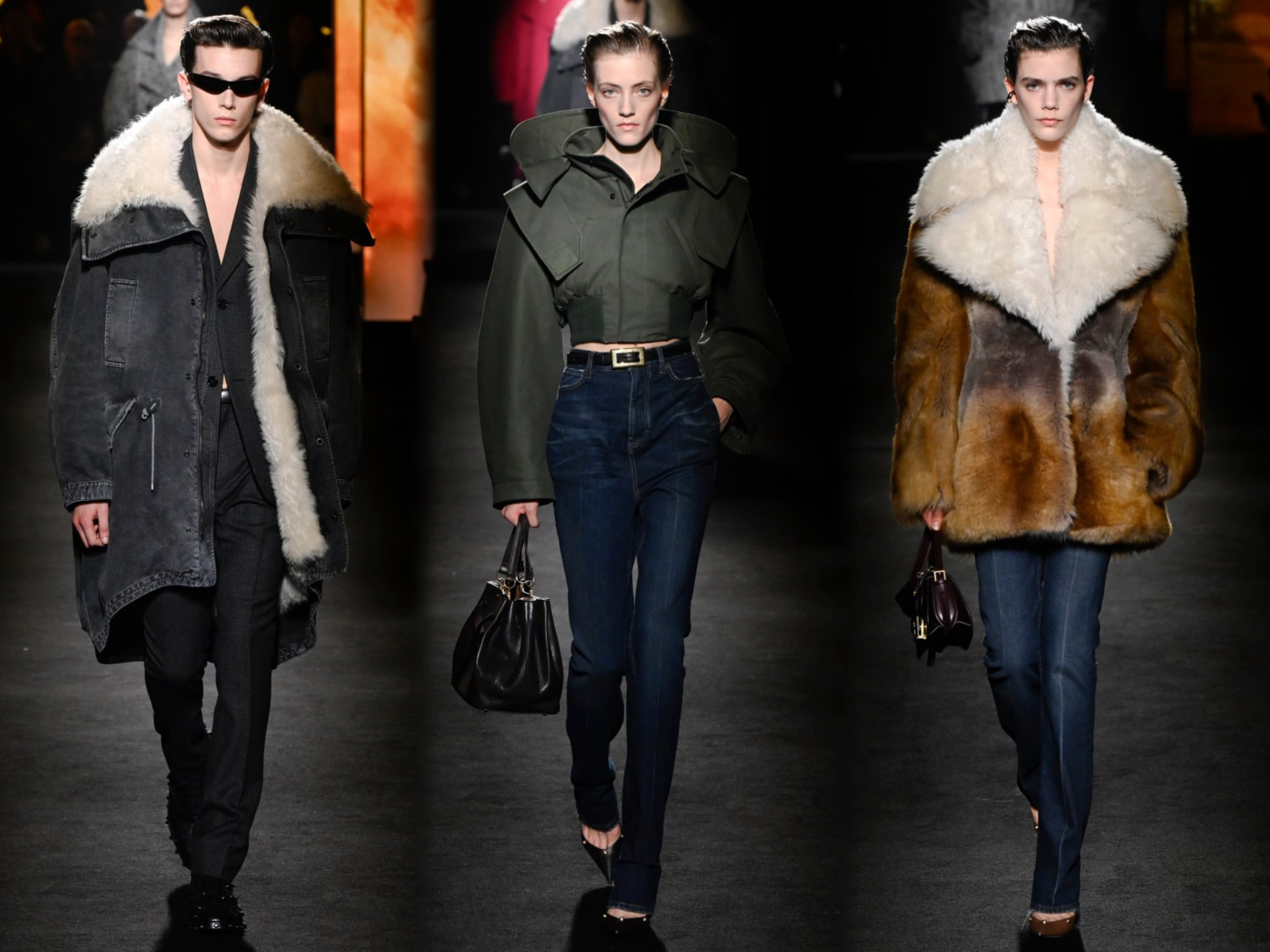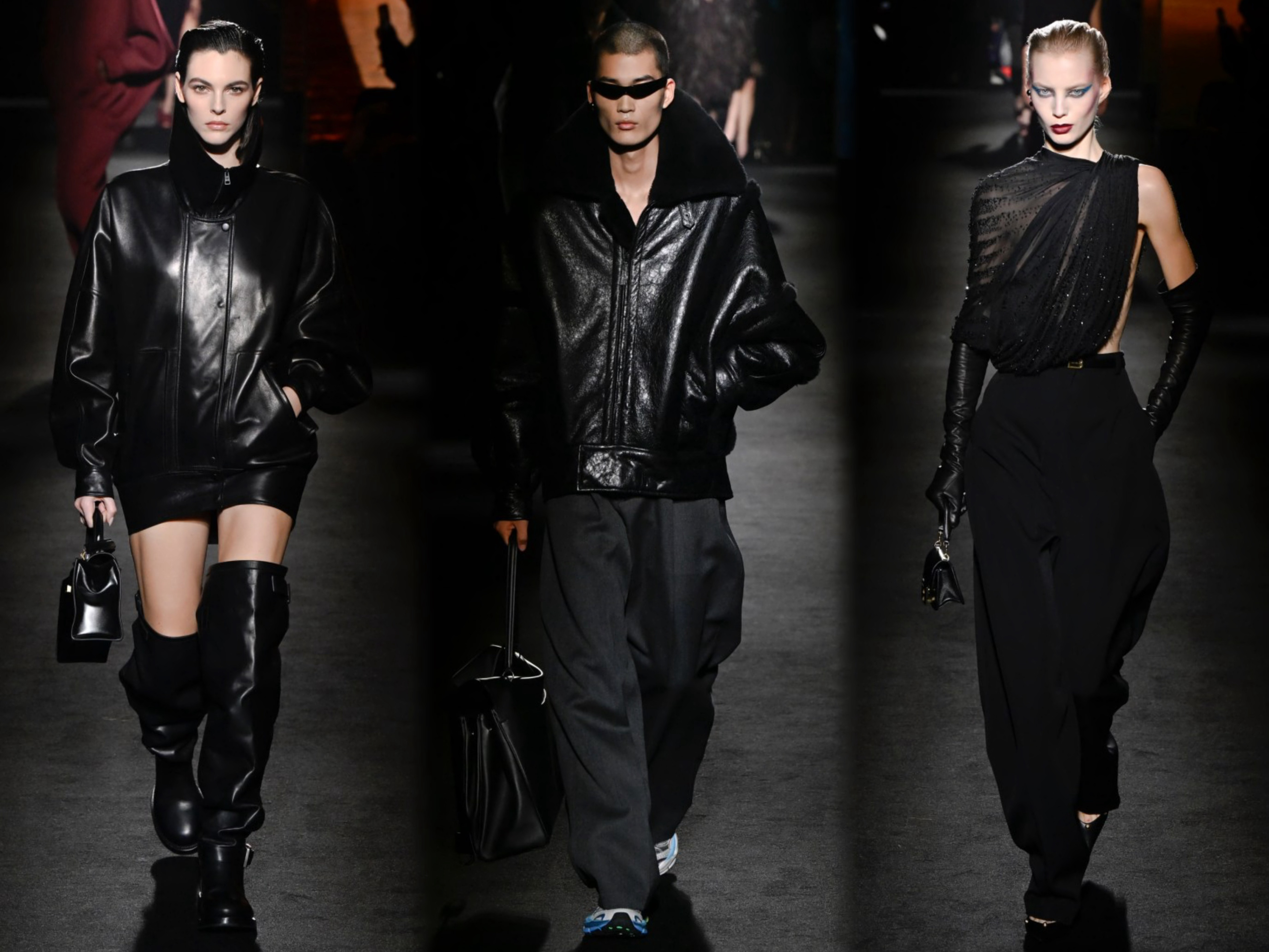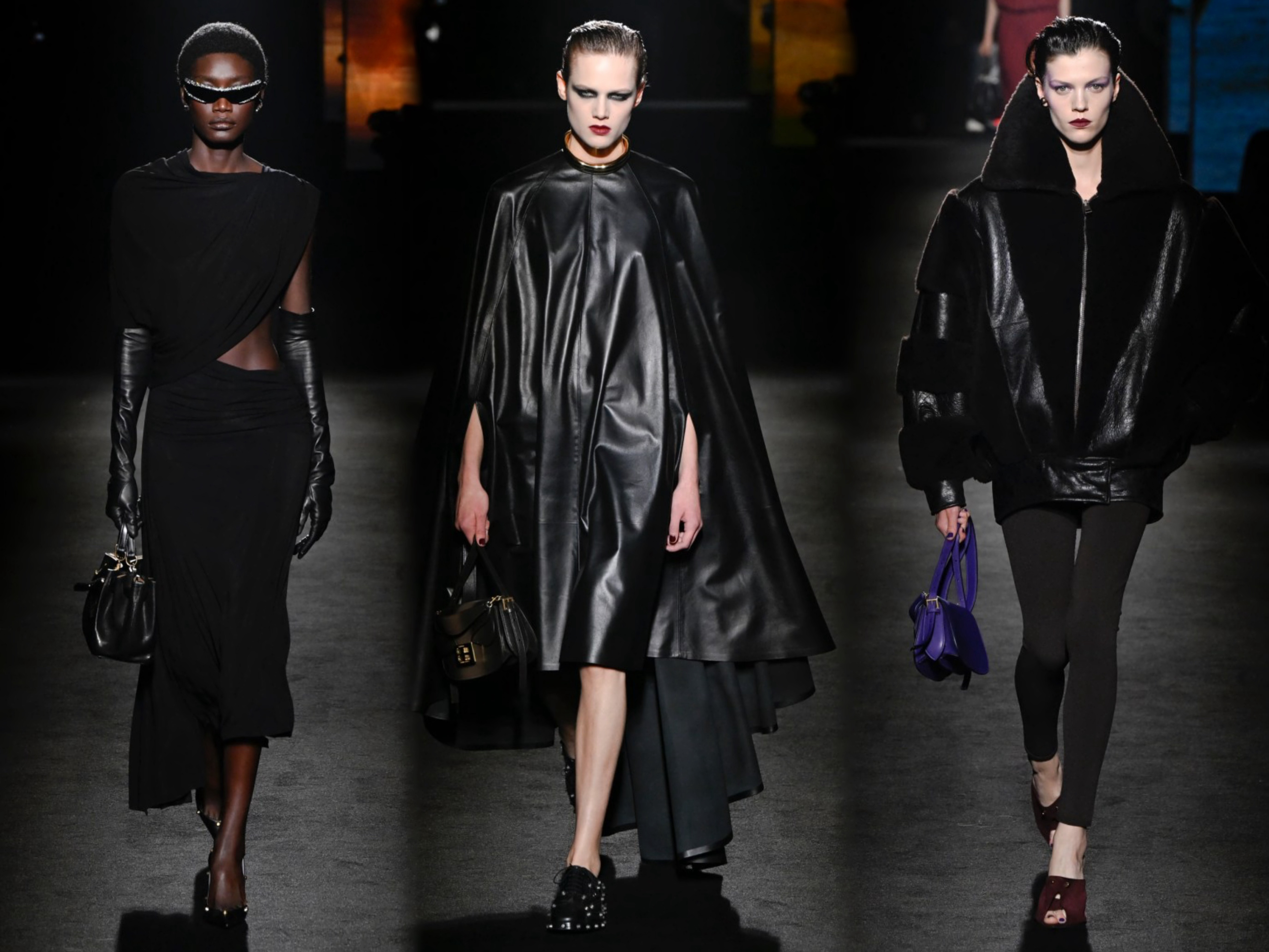创意总监Pierpaolo Piccioli 本季主题 "ClairObscur" (光与影),以文艺复兴绘画的光影技法为灵感,聚焦光影对比的视觉表达,通过丰富多样的材质运用,融合经典设计与实穿性,弱化繁复装饰和街头符号,将茧形大衣、渐变皮草等优雅元素融入系列,从日常着装到晚装礼服,回归品牌创始人Cristóbal Balenciaga的廓形哲学。巴黎时装周直击时尚幕后