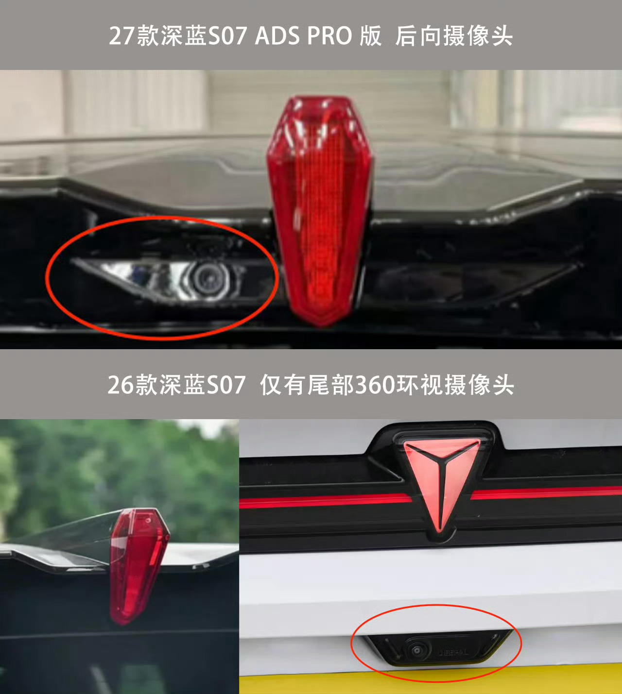 26款深蓝S07实车现身,从申报图来看,新增舱内激光雷达和后向摄像头,舱内雷达采用的华为乾崑激光视觉Limera感知模组,据说对30厘米小物体感知精度提升45%,同时还支持20余项主动安全功能。
