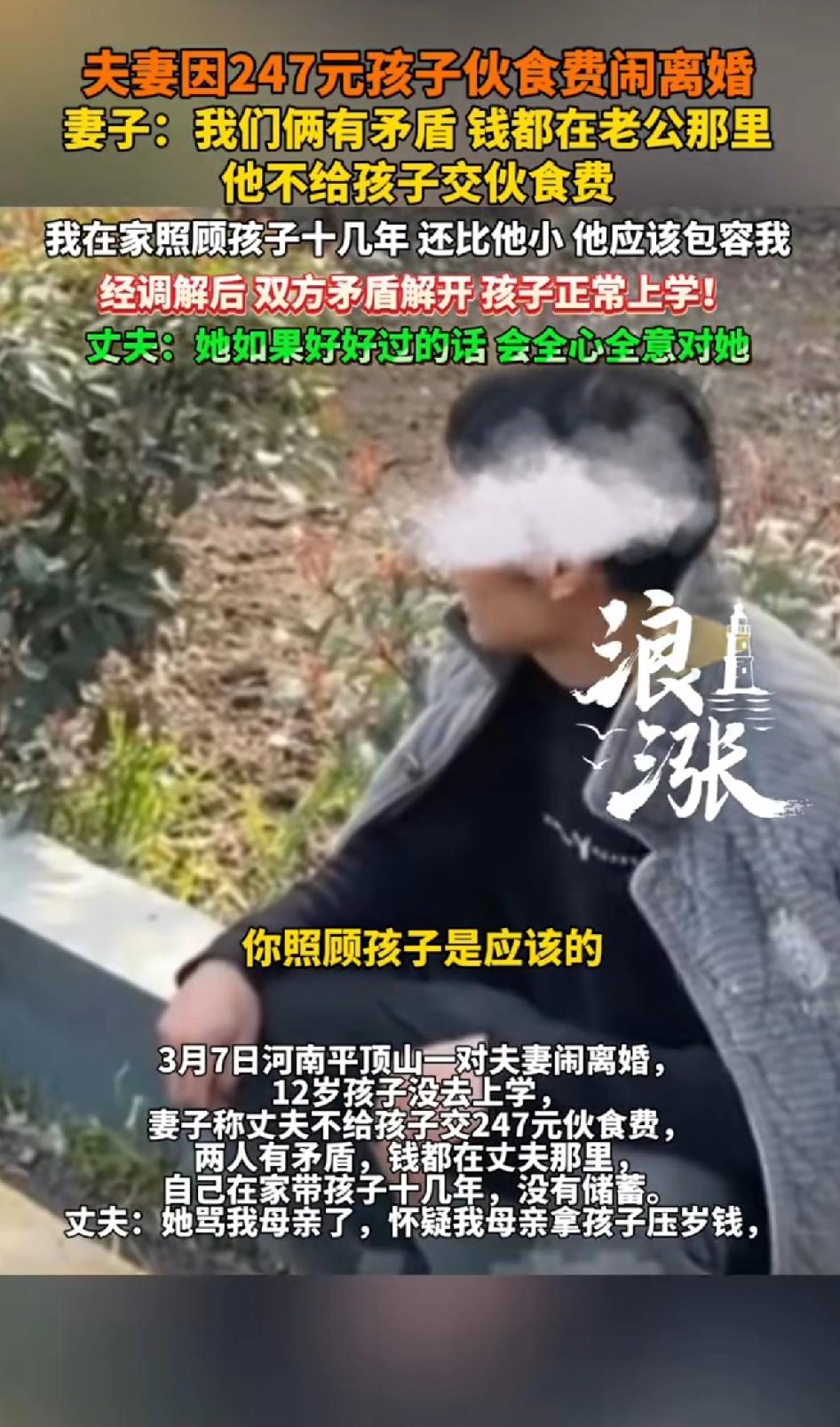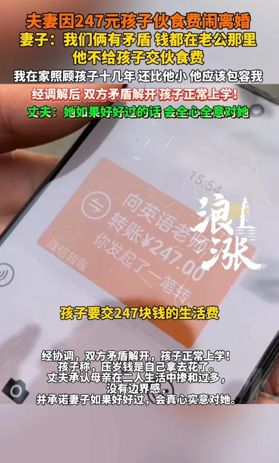 夫妻因247块钱孩子伙食费闹离婚,妻子:我们俩有矛盾,钱都在老公那里,他不给孩子