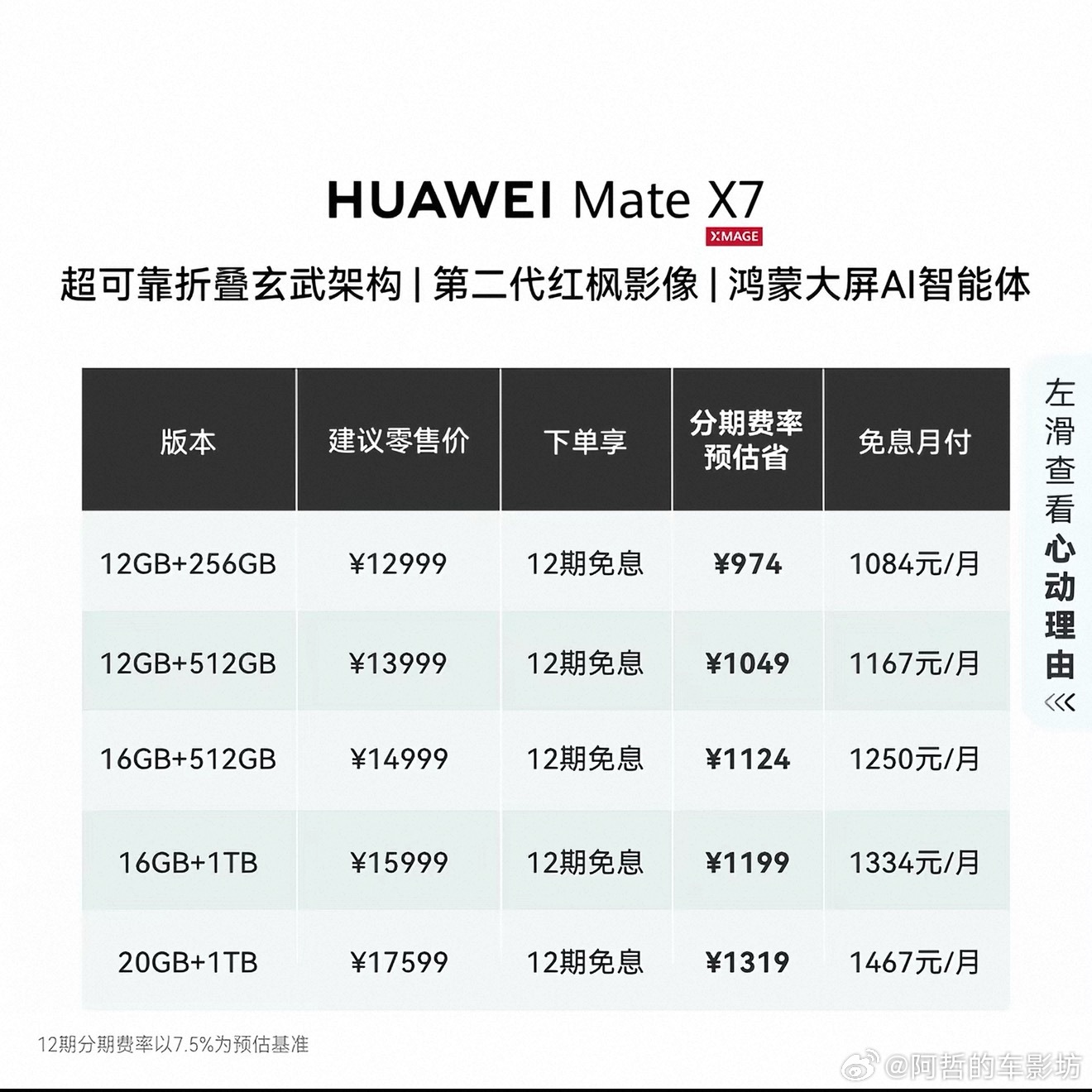 在香港的MATE X7 16+512G标价是港币14988元店员说目前店里只有这一个配置并且现在可以优惠现金1000元