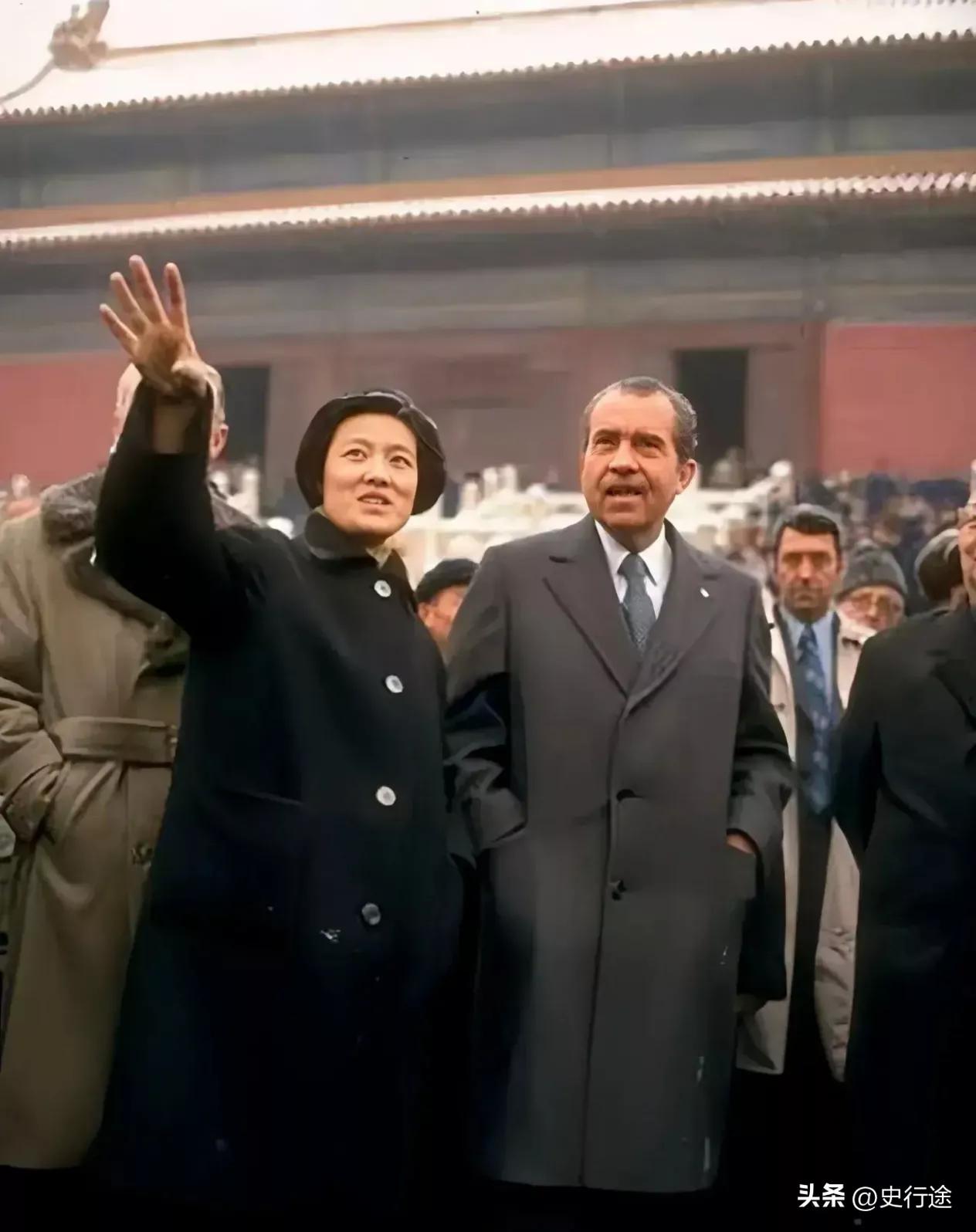 有谁知道,与尼克松站在一起的是谁? 一九七二年的照片里,很多人最先看到的,是从舷梯上走下来的那位美国总统。 红地毯、礼兵、故宫屋檐,构图熟得不能再熟。再往旁边一瞥,身边那位中国女性才慢慢入眼,黑色大衣,站姿笔直,神情安静。她叫章含之,那七天里,总是在这些画面里出现。 她的身世不算普通。 母亲谈雪卿曾是上海名媛,父亲陈度出自陈调元家中,养父章士钊做过司法总长、教育总长。 名字摆出来,很容易让人觉得她靠的是家世。真正托得住她的,是一九六〇年那一张北京外国语学院研究生毕业证书,和多年来一点一点磨出来的语言功底。 翻译的工作,不像照片那么体面。长时间听录音、跟读、改发音,一遍遍练,嗓子沙哑了照样上。章含之就在这种枯燥里,把英语磨成可靠的工具,又把礼节、政策口径、场合感一块记熟。外表是大家闺秀,说话做事却有股“不能出差错”的轴劲。 一场宴会,那天她在席间翻译,毛主席听得仔细,觉得这个年轻人嘴里每个词都稳妥,就让她教自己英语。结果很清楚,从普通译员一下子到了领袖身边。坐在这种位置上做语言工作,一句翻错就可能被放大,她只好把紧张压在心里。 “毛主席对她非常满意”这句话,后来常被提起。 满意代表信任,信任积下来,就换来更大的职责。一九七二年尼克松访华,接待方案里需要外语硬、反应快、守分寸的人,她就在列。这不是天上掉下来的运气,而是多年试出来的结果。 二月二十一日,尼克松的飞机落在北京,七天行程从舷梯那一刻开始。 那几天,北京的空气都绷着。接待、警卫、报道各有各的忙,语言工作夹在中间,出不了岔。后来人们总结,那是中美关系的重大转折,她就在这一页上,负责把两种语言一段段接牢。 二月二十四日,队伍走进故宫。 照片里,她穿着黑色大衣,一只手插在口袋里,另一只手指向屋宇,神情专注。尼克松侧过身认真听,随行人员围在旁边,看文物也看交流。有人回忆,尼克松夫妇夸过她,人长得大方,气质好,学问扎实,英语顺溜,这样的印象,说明她把自己的事办得干净利落。 第二天,一行人去了八达岭长城。 山风大,台阶陡,说话都要提着气。她照例跟在队伍旁边,指着远处的一处遗迹解释,用几句简单的话把本地人的说法翻出去,有人记得她提到那是炼铁用的老设施。尼克松听完,连连称赞,把她比作很好的向导。外交场合的夸奖少不了礼貌,也需要前几天相处留下的信任。长城顶上的那张合影,就是在这股风里拍下的。众人排成一线,她站在尼克松身边,表情不张扬,气场却不弱。 访华行程转到上海,同样离不开翻译。 工厂车间里机器轰鸣,城隍庙里人头攒动,一边要讲生产建设,一边要讲老城风俗。章含之在不同场景里不停换挡,有时是紧绷的政策表述,有时是稍微松一点的闲聊,把复杂的中国现实拆成一句句短话递过去。尼克松夫人说,她的发音听不出明显口音,尼克松也感叹,有这样一位翻译,是这次访华的幸运。 等飞机飞走,新闻头条换了主题,她的工作没有停。 章含之照旧在政府系统里做翻译,参加一场又一场外事活动。别人记住的是哪位领导见了哪位客人,她日常面对的,是一页页发言稿和小字注释,哪些词不能直译,哪些段落要提前沟通,她都得先想好。真正让生活节奏一沉的,是一九八三年乔冠华的去世。那一年丈夫离开,“悲痛万分”四个字背后,是许多不愿对外人细说的情绪。 往后,她慢慢退到台前之外。 队伍里有了新面孔,她把更多时间交给书桌和日常琐事。 二〇〇八年,她去世的消息传出,人们重新翻旧照,重新提起她的名字。名门之后、资深翻译、乔冠华的妻子、尼克松访华的见证者,这些标签轮番出现,既贴得上,又有些粗。 把这些年份连起来看,她身上最显眼的一点,是克制。家世足够写成长篇,她没有拿来当谈资;站在国际新闻画面里,她也没往前挤一步。认准翻译这一行,就按着职业要求去做,把每一句话送到该去的地方,该严肃时不添一笔,该缓和气氛时,懂得接上一句轻巧的解释。那场著名的会面,需要高层判断,也离不开这种埋在细节里的专业能力。 那张与尼克松站在一起的照片,如今再看,主角仍在画面正中。 镜头边缘那个人,衣摆在风中轻轻晃动,眼神落在前方的宫墙或者城砖上,像是在默默预备下一句要说的话。 名字叫章含之,这几个字被记住时,那些多年累积的耐心、分寸和辛苦,也就有了被看见的机会。