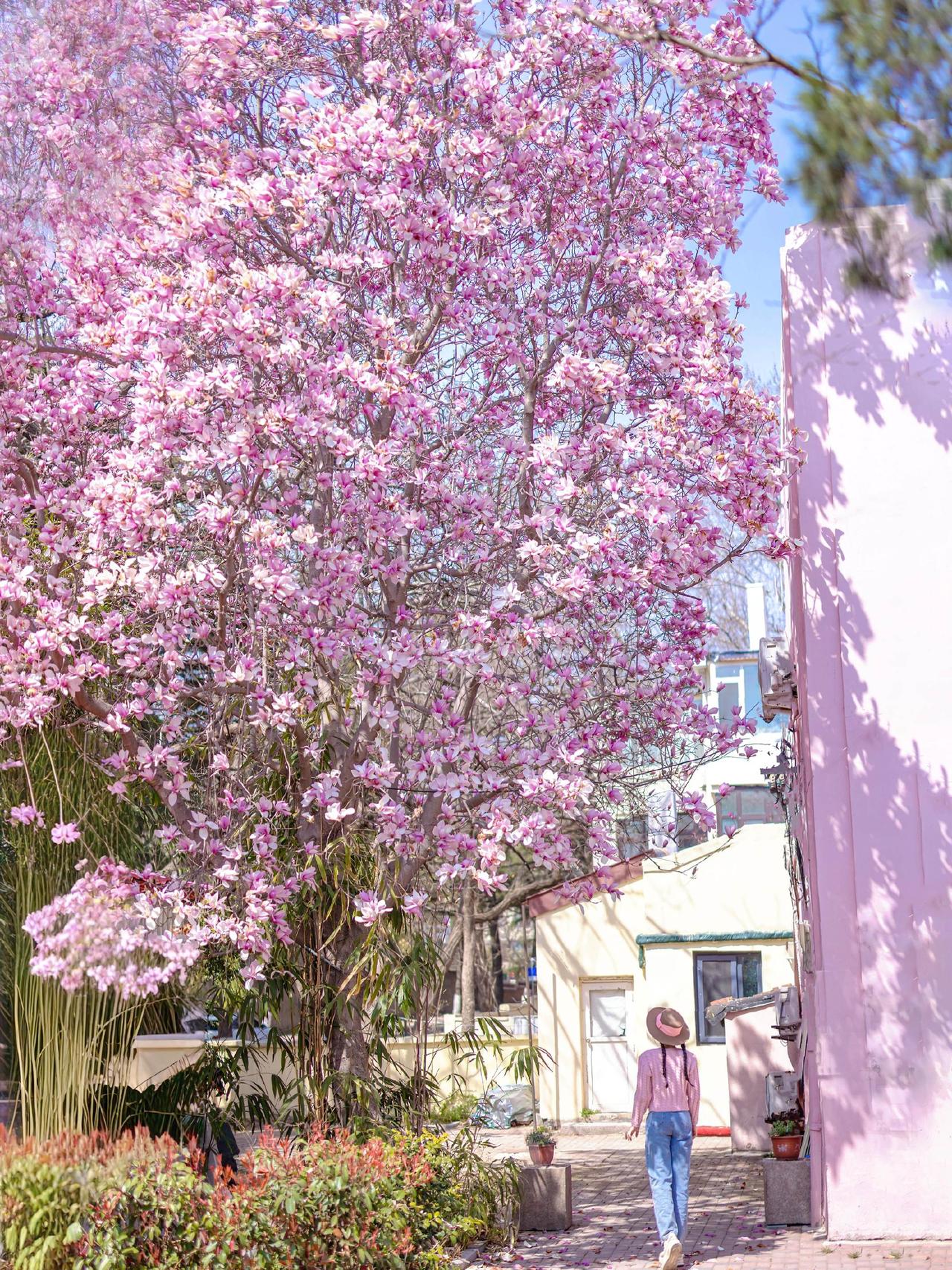 青岛一年四季都有花开,三月樱花、四月玉兰、五月蔷薇、六月雏菊、七月月季……花树下走过,拥有着暖风和阳光仿佛拥有了全世界。春天转瞬即逝,所见皆春日限定,一期一会,生命中有无数值得珍惜的时刻,花开算一个。请做好准备迎接青岛的春天。 🌸P1-2毛绒绒的流苏树 花期4月 一棵树仿佛点亮整个村子!花如浓云,洁白如雪,有清淡香味,沁人肺腑。 导航到西山前村423号 🌸P3院子里的粉色玉兰树(花期3月底) 八大关正阳关路34号 🌸P4-5蔷薇花瀑布(花期5月) 白沙河运动公园南4门 🌸P6晚樱大道(4月底) 城阳区人民广场附近安城路段、顺城路段、德阳路段。 🌸P7老城区七里香(花期4月) 自由中古店门口 🌸P8老城区蔷薇花(花期5月) 湖南路路口处 🌸P9-10崂山樱桃花开(花期3-4月) 大崂樱桃谷、泗水 🌸P11 玉兰花大道(3月底~4月) 崂山区海宁路,导航或打车到传记文学公寓门口,乘386路在颐景园站下车 🌸P12 海棠花大道(花期4月) 李村公园除了海棠还有樱花 🌸P13青岛中山公园 樱花(3月底) 春天你好 青岛旅游攻略 春天就要出去野 青岛赏花好去处