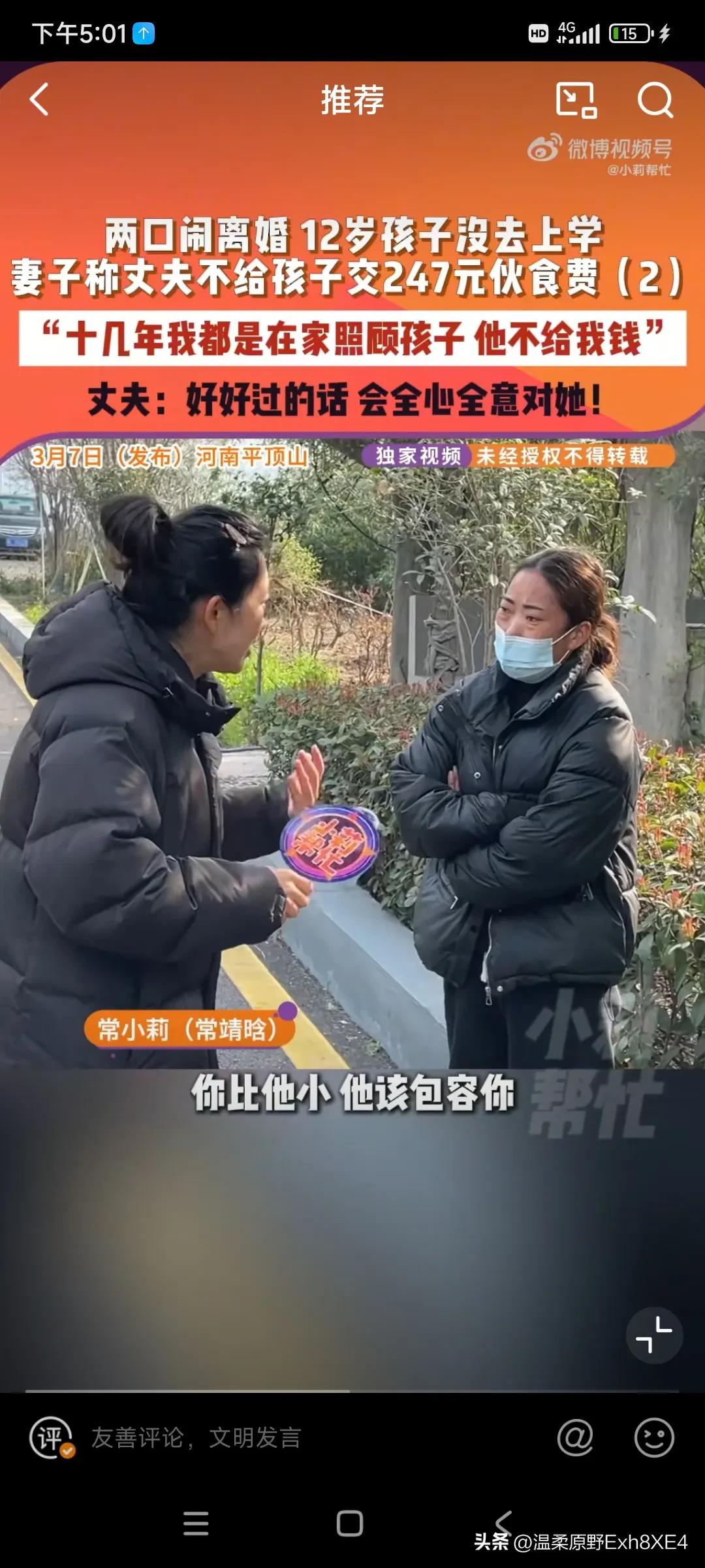 这一幕道尽了农村男人的心酸与惆怅! 就因为247元伙食费,孩子被迫停学。年轻的妻子指责丈夫不给钱,也不懂得包容自己!家里婆婆还丝毫没有边界感! 一脸“朴实”的农村男人也是心累。控诉妻子辱骂婆婆,自己累死累活在外边工作,可回到家还要被妻子各种挑刺!自己再也不会给她一分钱。 可女子认为,自己比老公小很多,他就得包容自己!自己也想出去上班挣钱!男人听罢,立马软下了话头,称“好好过的话,我把身上的肉炫下来给她都中” 有网友说,200块钱是给孩子的都不肯出。谁要你那点破肉。 还有网友说,大哥哪找的年轻媳妇,不行我愿意养啊[捂脸]。 是啊,真想不明白这大哥咋想的?年轻的媳妇,不论你是有钱人还是没钱,不都得哄着嘛[偷笑] 他也不怕鸡飞蛋打啊?您觉得这大哥是聪明还是蠢呢?