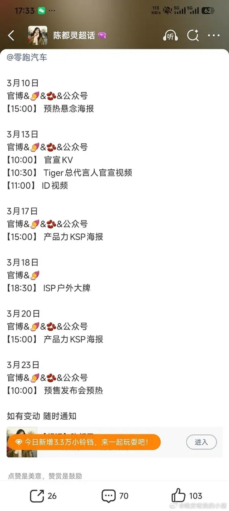 陈都灵零跑汽车预热节奏,还是代言人title🐮