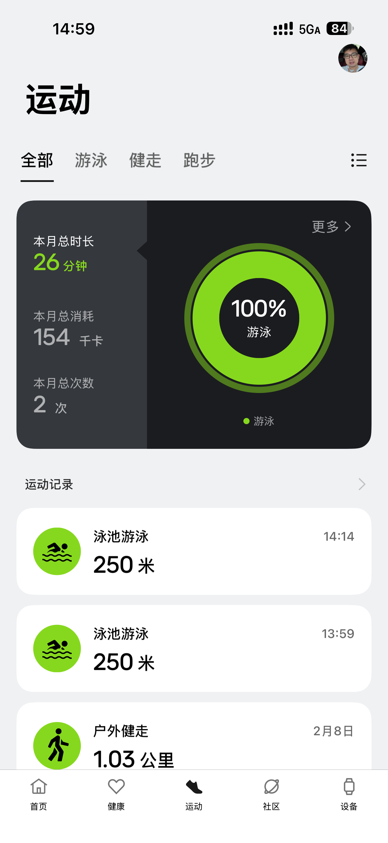 恢复游泳运动的第一天,游前和游后明显身体状态的变化,游泳分泌激素后,整个人的精神状态更好了。第一天500米唤醒身体。