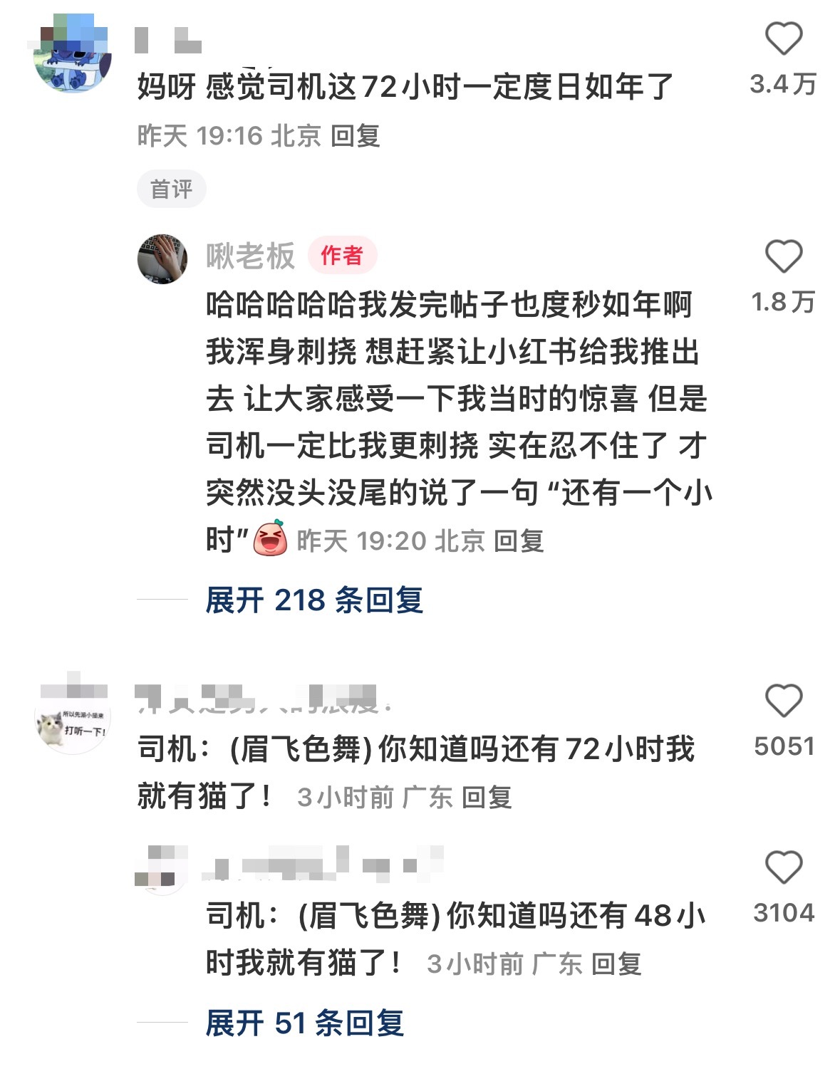司机还有一个小时就有猫了