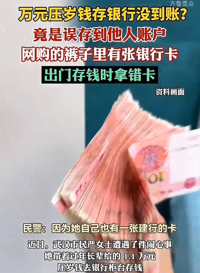 闹了一出大乌龙!湖北武汉,女子拿上银行卡去存1.1万元压岁钱,ATM机操作失败后,她又来到柜台,柜员很快帮她办好了存款业务。谁知,回家一看手机,女子顿时懵了,钱根本没有进自己账户。那这笔钱到底去哪了呢?女子赶紧跑到派出所寻求帮助,谁知,背后的真相让人哭笑不得。 春节那几天,武汉的严女士盯着手机银行发了半天呆。刚才明明亲手把1.1万块现金塞进了银行窗口,怎么账户余额一分钱都没动静? 说实话,她出门前还特意把这笔压岁钱攥得死死的。想着大过年的,这么多现金揣身上不安全,不如直接存银行稳妥。谁能想到,这个看起来最保险的操作,反倒把自己坑进了坑里。 事情的根子,得从一条二手裤子说起。前些时日,我于网络购得一条长裤。待货品送达,我未加思索,便随性将其穿上身,仿佛这是一场与新衣的自然邂逅。结果某天掏兜的时候,摸出来一张硬邦邦的塑料卡——一张完全陌生的建行储蓄卡。 这张卡其实就是个天大的警报信号,可惜当时谁也没当回事。过年嘛,脑子里全是喜庆热闹,她就顺手把这张卡和自己的卡混在一起,压根没多想。 到了银行门口,严女士先是去了自动存款机。把那张卡往机器里一插,屏幕立马跳出来提示:交易异常。这其实已经是系统在拼命提醒她了,可惜她没听进去。 转身就奔了人工窗口。把现金和那张卡一股脑推过去,柜员也没仔细核对,连人脸识别都没走,就让她签了个字,钱就这么存进去了。 你说怪不怪?这帮银行系统取你钱的时候,恨不得把你祖宗十八代都查一遍。可往里存钱的时候,倒是痛快得很,闭着眼就收了。 严女士回到家中,翻找出自己的卡查看。刹那间,她呆立当场,眼神惊愕,整个人仿佛被定住一般,显然是被卡上的状况惊住了。手里这串卡号根本对不上号,再翻那条裤子的口袋,真相大白了:别人丢的卡,装进了自己的钱。 银行后台这下炸了锅,网安部门和值班主管开始疯狂查数据。顺着这张卡的线索一路追,最后追到了几千公里外的河北任丘。此卡的真正所有者,乃是一位姓李的本地女士。她或许与这张卡有着独特的关联,而这背后,或许藏着一段不为人知的故事。 这条裤子就这么从华北平原飘到了武汉。物流那边也是睁一只眼闭一只眼,压根没检查出来兜里还夹着张银行卡,就这么稀里糊涂送到了严女士手上。 接到警方电话的时候,河北那位李女士也吓了一跳。翻开《民法典》第九百八十五条,白纸黑字写着:不当得利必须返还。法律是死的,但这事儿还真没必要闹到法院去。 李女士二话不说,直接微信把1.1万块钱原封不动转了回去。不用走流程、不用打官司、不用扯皮,这场差点闹大的乌龙就这么干脆利落地画上了句号。这才是真正的人间清醒。 但你得明白,不是每次都能碰上这么通情达理的人。瞎塞卡、瞎存钱、瞎签字,这一套组合拳下来,把自己坑得死死的。 电子账户里的每一分钱都有它该去的地方。但这事儿也提醒我们:该走的流程一步都不能省,可人与人之间的那点信任和善意,也是真金白银换不来的宝贝。