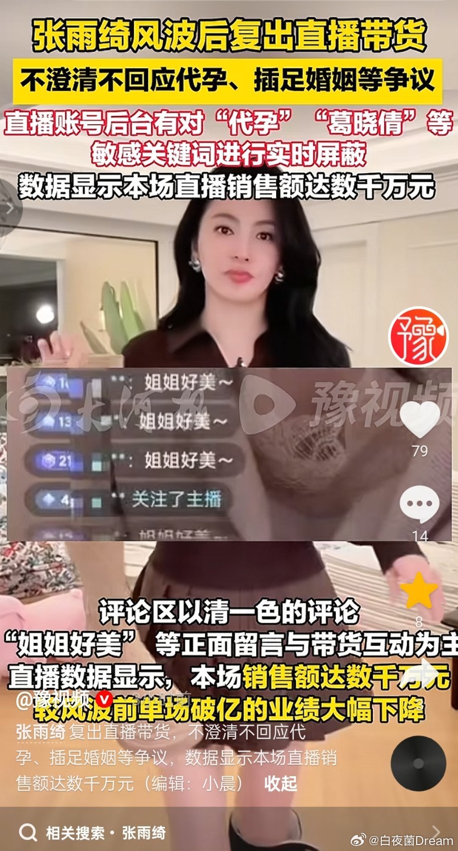 张雨绮在直播带货?张雨绮风波后复播带货