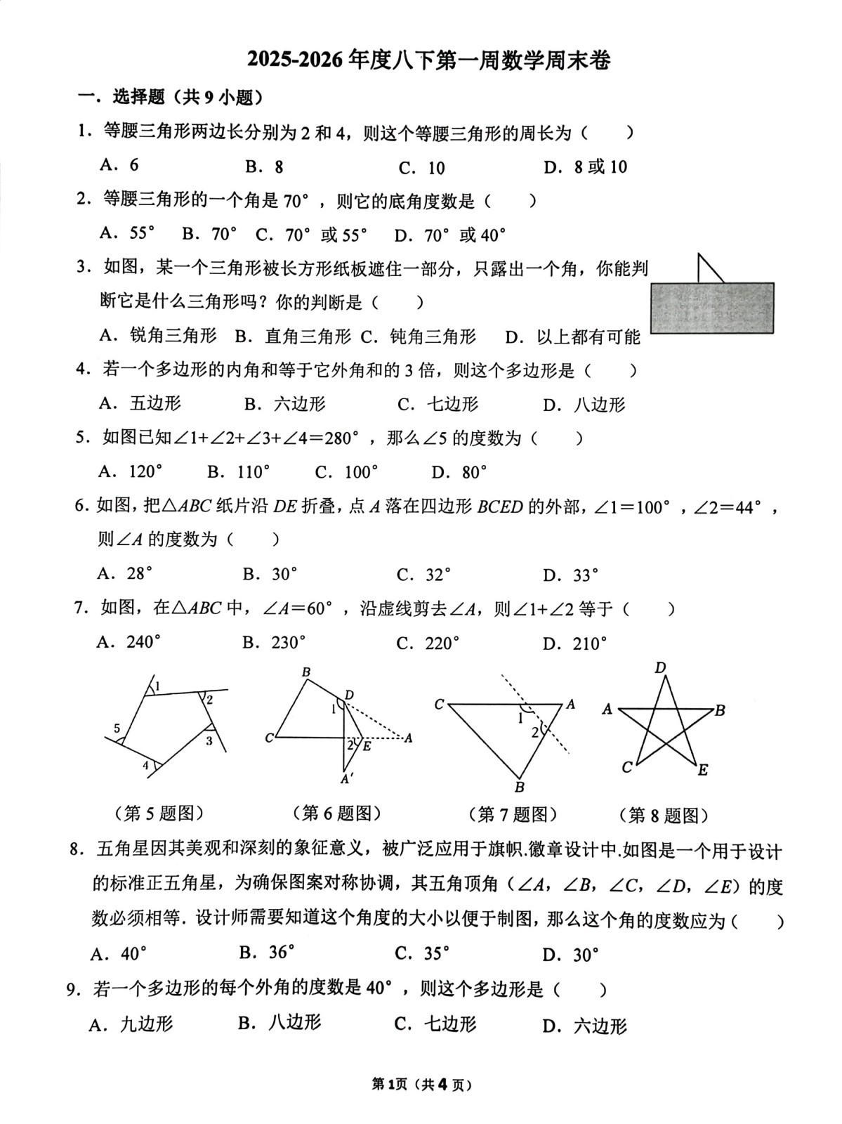 北师大版初中数学教材八年级下册第一章,证明二,三角形内外角,等腰三角形专题练习卷,适合基础中等或者薄弱的学生,后面可直接打印,拿走不谢。教育 途虫数学 初中数学 八年级数学 一本【中考五年真题汇编】2026地区专版 7科合订复习刷题初三备考cz