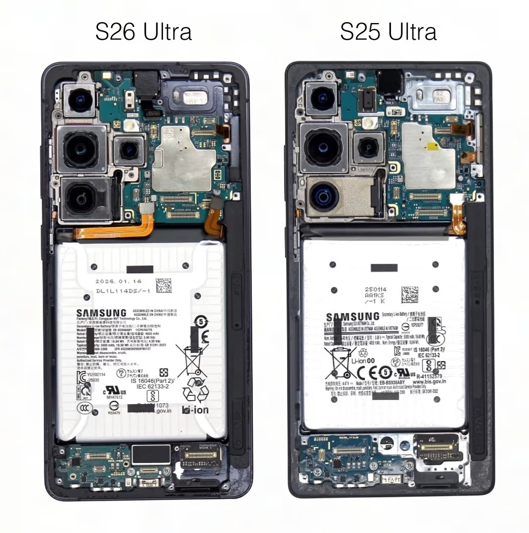 三星S25 Ultra对比S26 Ultra,最大的区别就在于5倍摄像头采用了新结构设计,手机内部就那么大点面积,无非就是拆一点东墙,补一点西墙。