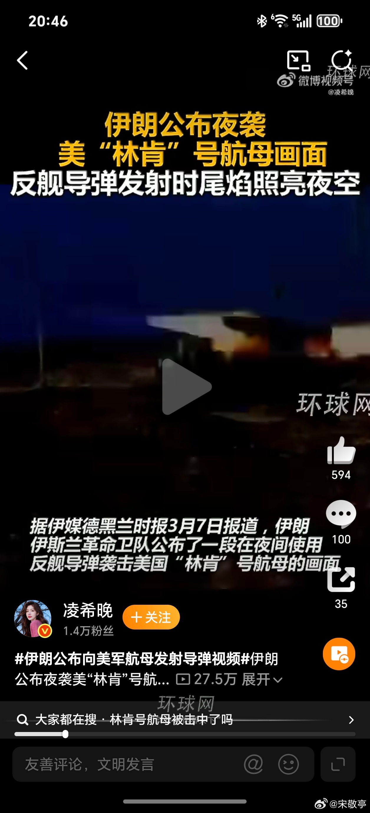 伊朗公布向美军航母发射导弹视频伊朗高调晒出“夜袭林肯号”视频,本质是舆论战。一边伊朗:精准命中,航母连夜后撤千里;一边美军:全程淡定否认,舰载机照常起降。导弹有没有打中不重要,重要的是打破“航母不可侵犯”的神话,威慑拉满,气势先赢一局。