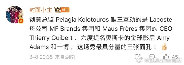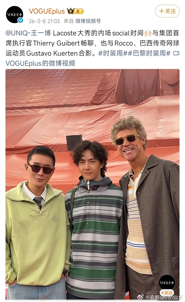 王一博不愧国际巨星,每一场都是最最最顶级的待遇,一真是给国人长脸,与集团CEO相邻入座,和ceo坐一起热聊ing,握手,贴面礼…是谁酸了…而且秀场全英文social,和CEO、总监、外国女星畅聊无障碍,全方位的实力王一博看完你的看你的