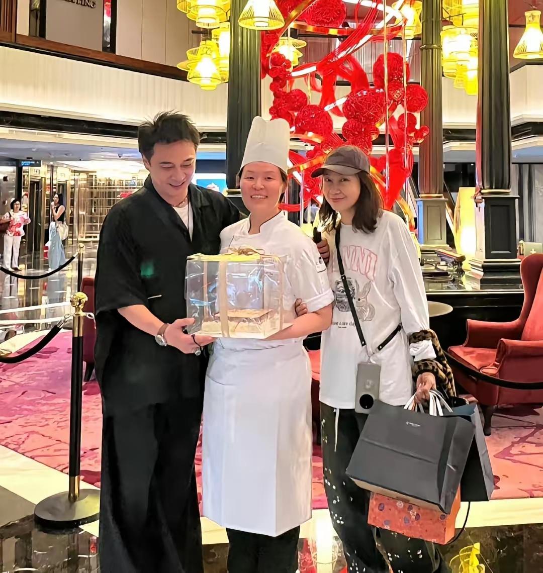 吴镇宇携妻儿在新加坡餐厅用餐,65岁的他面色红润、精神饱满。妻子王丽萍罕见素颜亮相,皮肤白皙,气质淡雅,显得十分年轻。儿子费曼发型随意,体型微胖。一家三口同框,温馨幸福。