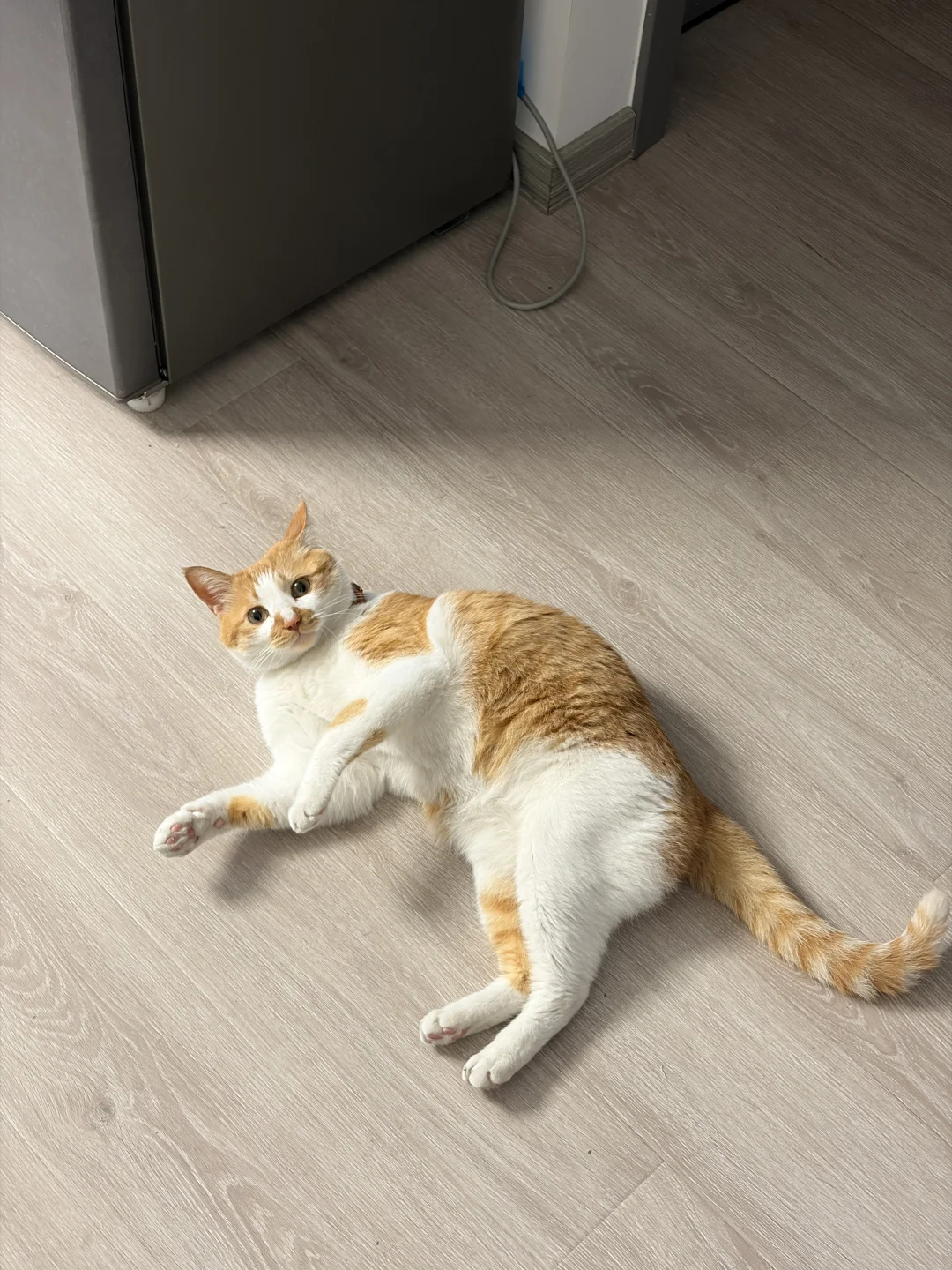 尾巴夹紧➡️地上打滚儿