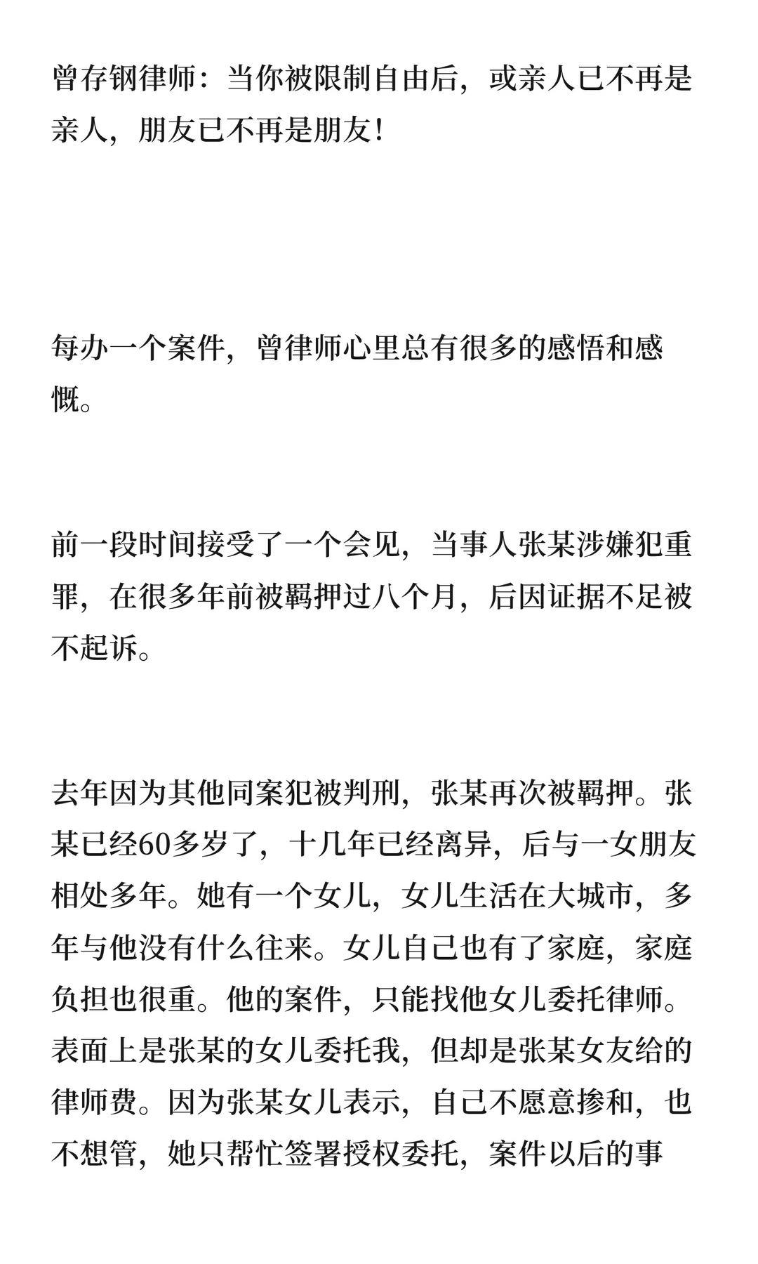 曾存钢律师:当你被限制自由后,或亲人已不