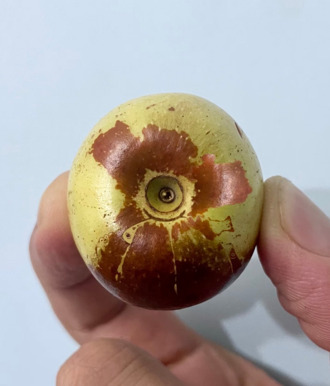 枣上发现的,买回来的冬枣,发现上面的纹路也可以进行各种联想。于是,就一图多联想画了出来。