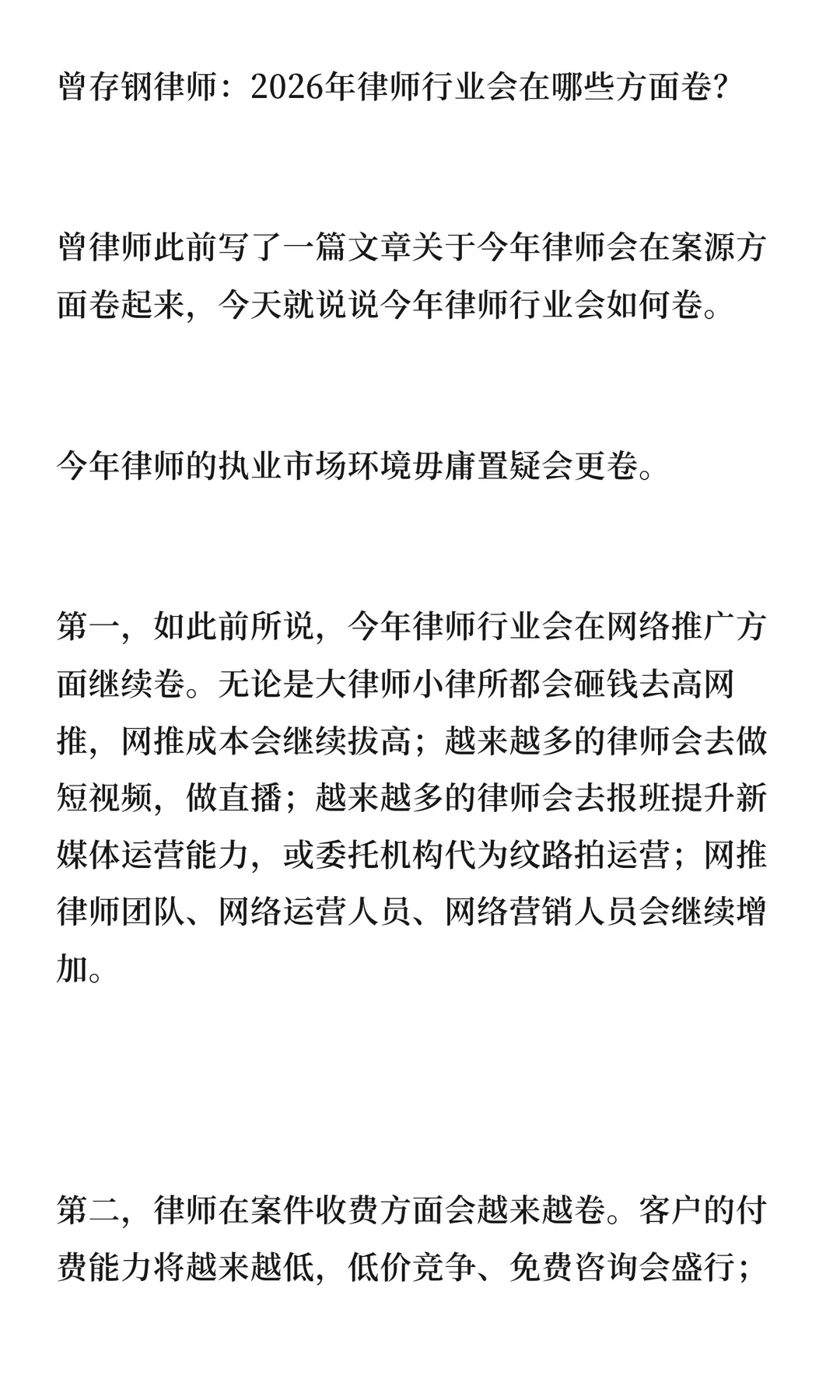 曾存钢律师:2026年律师行业会在哪些方面