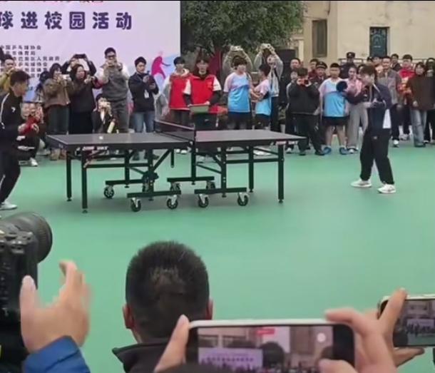 孙颖莎走进重庆校园,全程笑容灿烂,非常开心。 师生们沉浸式观看孙颖莎打球,莎莎挥拍打球又飒又稳,小白球快到看不清,师生们全程紧盯。莎莎耐心示范、温柔互动,笑容甜到犯规,签名合影来者不拒。校园秒变大型追星现场,人气与实力双在线,谁能不被可爱又能打的莎莎狠狠圈粉!