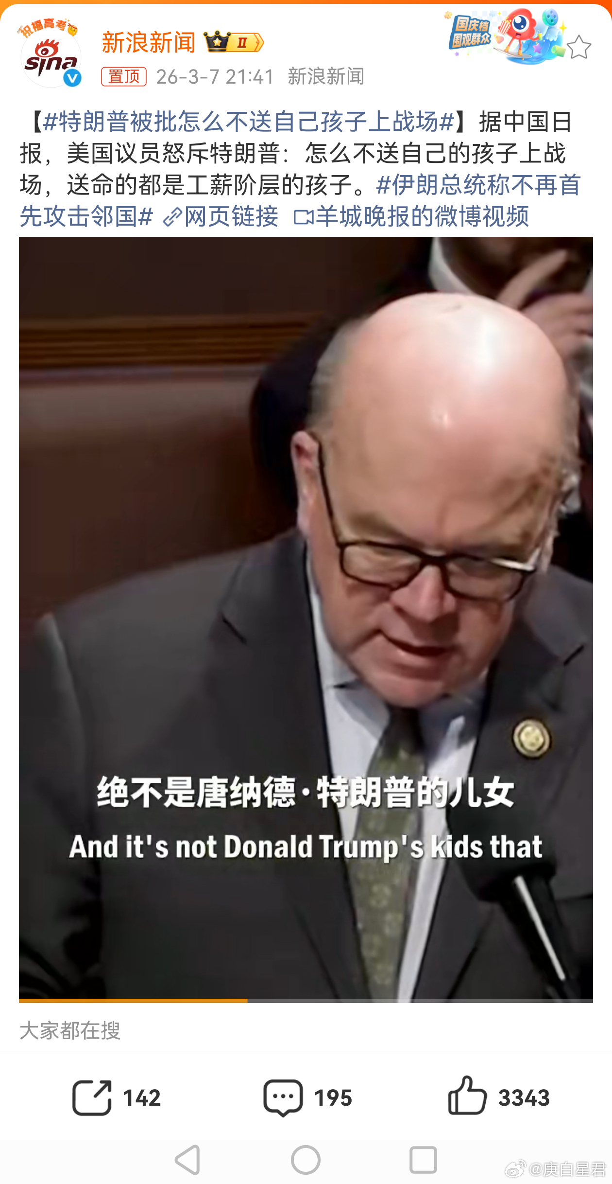 【特朗普被批怎么不送自己孩子上战场】