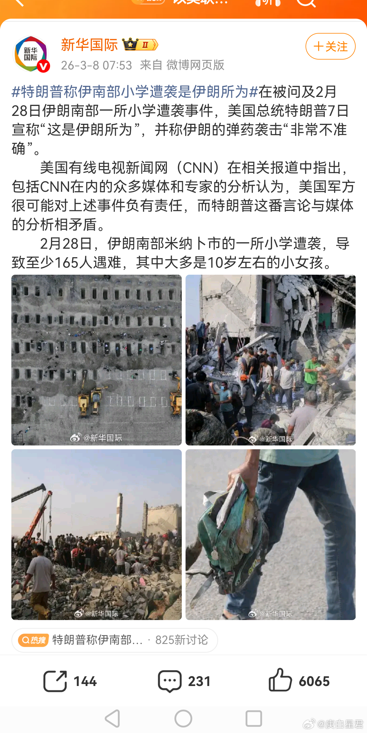 ——这画风熟悉,想当年美国炸我大使馆,美国政客说“误炸”,这次炸了伊朗的儿童学校,美国政客特朗普栽赃伊朗“误炸”,反正都“误炸”。这些就是美帝国主义的“普世价值”——欺骗人民,贼喊捉贼,霸权主义。今天是3月8日,国际劳动妇女节。需要科普的是,美国是发达国家中唯一未实行全国性妇女带薪产假的国家,也是全世界屈指可数的未实行带薪产假的国家之一。