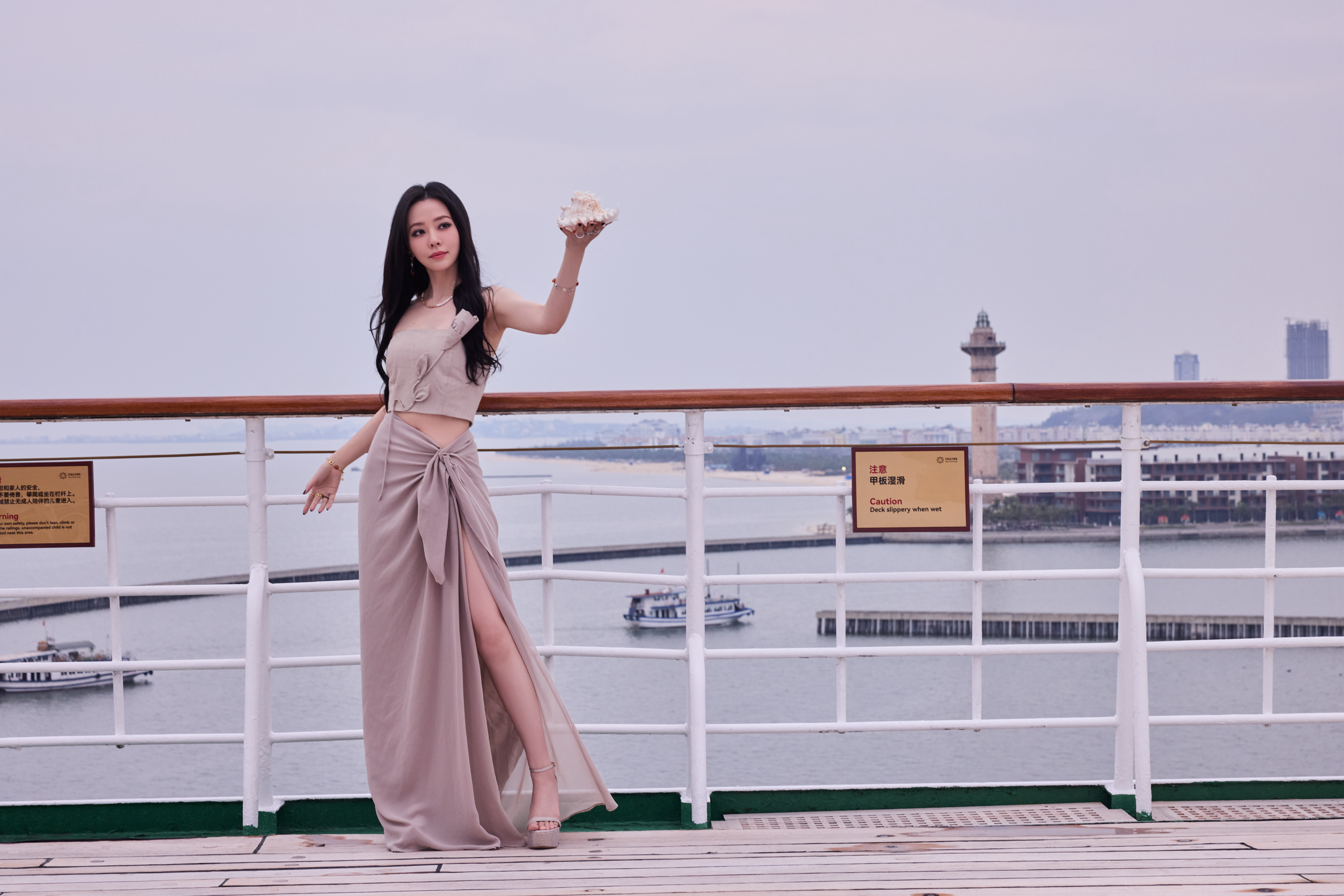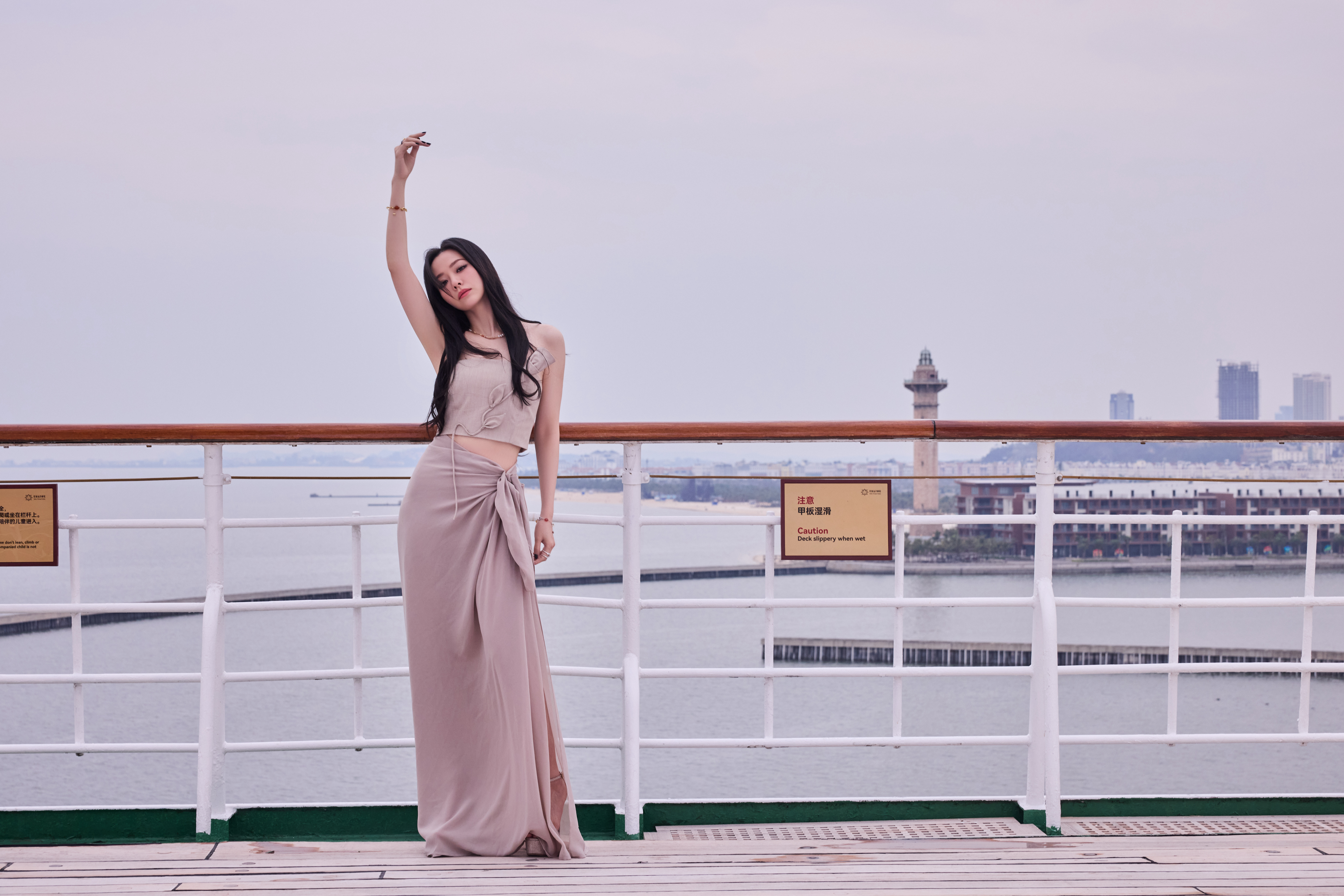影后也俏皮,辛芷蕾一袭超短裙,赤脚爬上楼顶看风景。屋顶的风景很美人更美。
