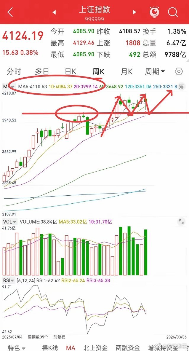 A股,明天就开盘了,下周行情走势应对方案?周末这两天外围的因素基本是美伊冲突加剧,都是偏利空的,只有利好结构性的,因此,明天大盘大概率低开。低开低走 ,还是低开高走,就要看资金选择了,但是从技术形态上来看,还是很清晰的。从明天开始,大盘如果二次探底如期而至,往下有4050附近,这里是五月均线,也是60日均线支撑附近,当然下方还有4080附近,这里是十周均线支撑,再往下就是前顶4025左右,以及半年线3972支撑附近。因此,操作上也很清晰,那就是一旦行情跌到4080-4050区间左右,是可以开始低吸了,而如果跌到4050以下,比如4025-3985区间,是可以加仓的。这样一来,二次探底就会形成,而二次探底之后,后面大概率就是新一波反弹行情。因此,观点不变,下周上半周或许是二次探底的抄底最佳时机,而下半周看新一波反弹启动。最后啰嗦一句,新的底部龙回头,昨天早上五点的文章已发布,下周敬请期待。