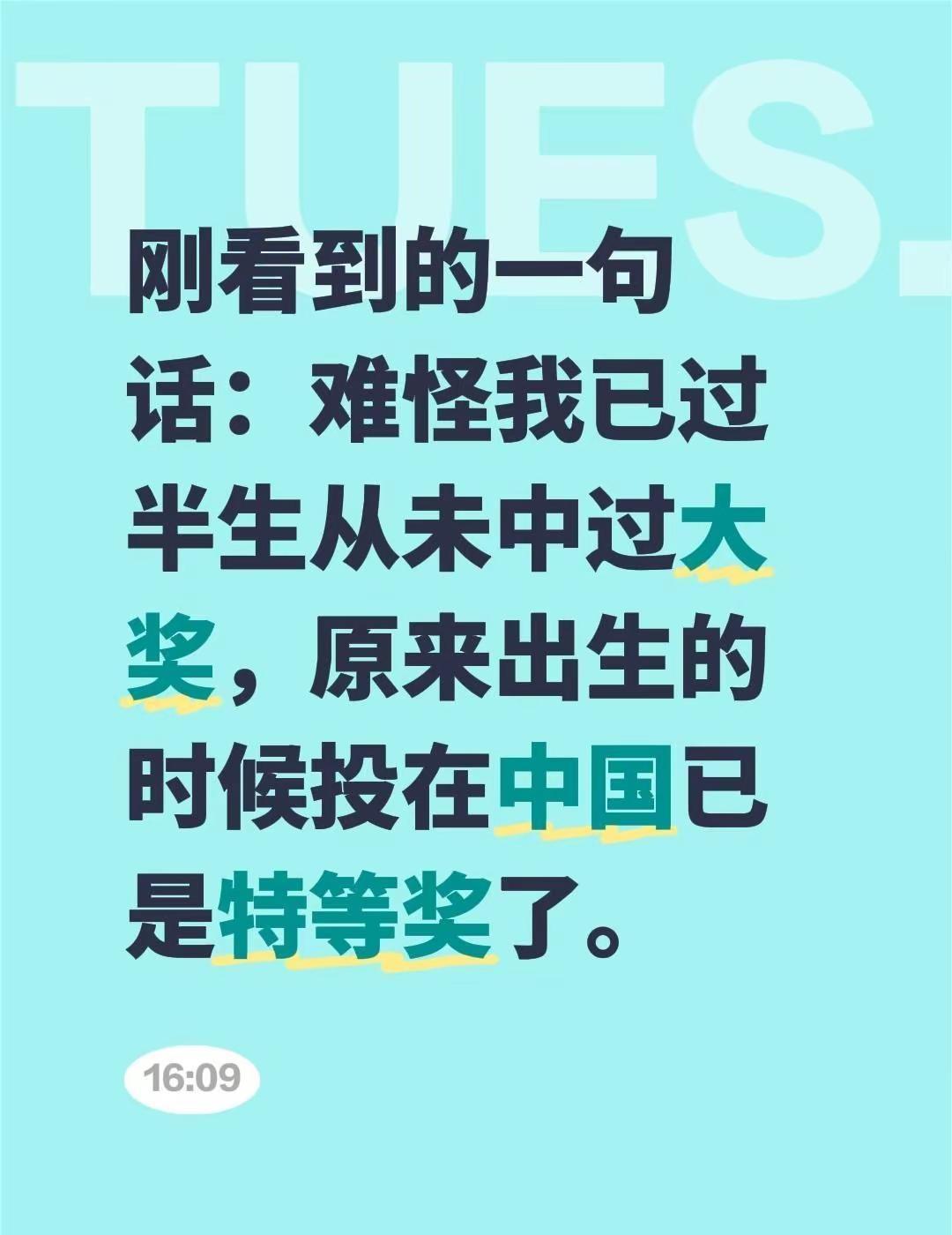 刚看到的一句话:难怪我已过半生从未中过大奖,原来出生的时候投在中国已是特等奖了。